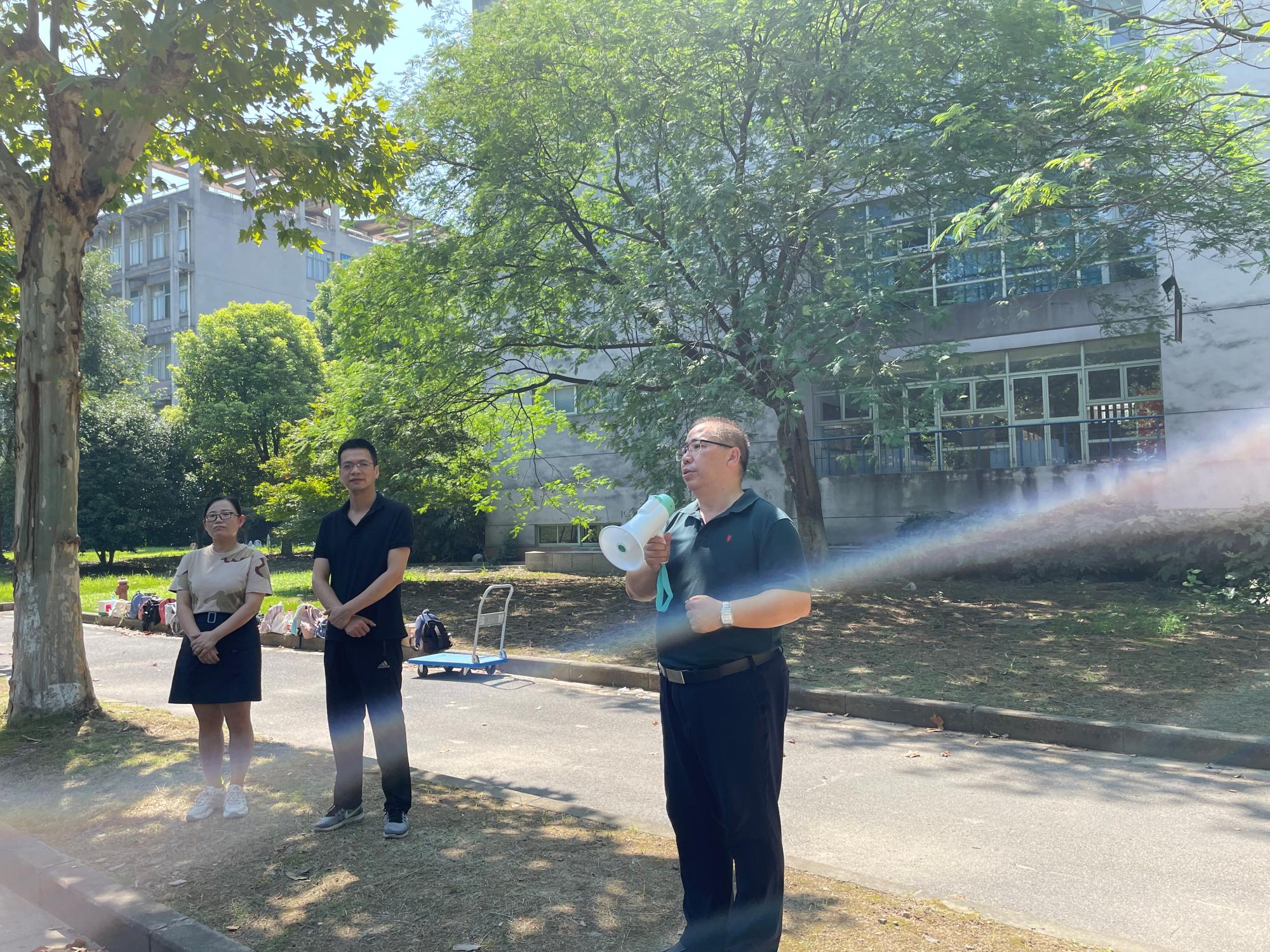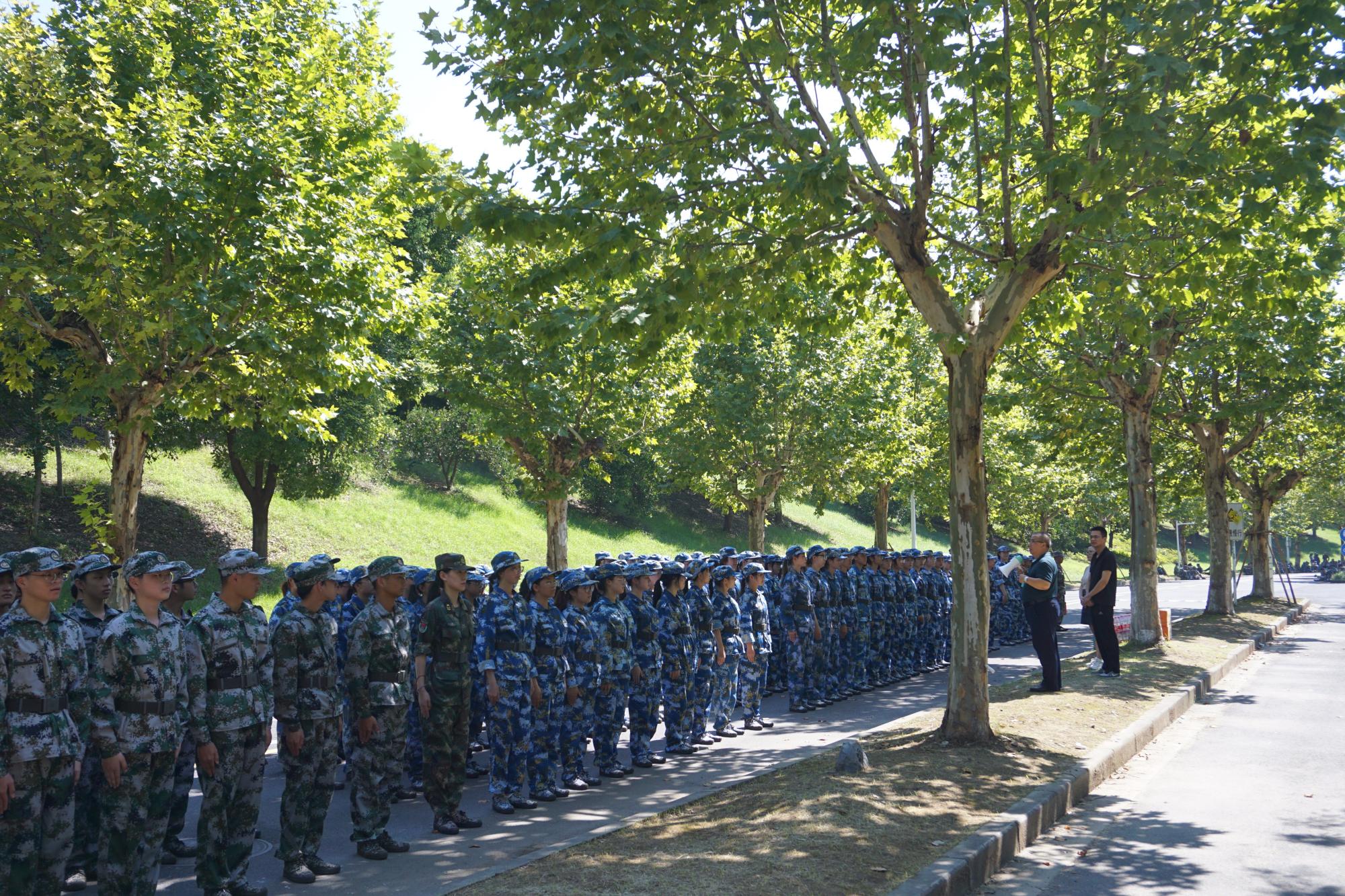 黄卫华首先向承训教官了解学生军训进展情况,并对承训教官的辛勤指导表示感谢和诚挚慰问。黄卫华向全体参训学生指出,军训是人生难得的锻炼经历,希望大家在教官的指导下能强健体魄,增强身体素质。此外,同学们要树立国防意识,学会分析国内外环境形势,提高爱军爱国的思想水平。最后,黄卫华鼓励大家凝心聚力、奋力拼搏,养成能够吃苦、善于吃苦的优良品质,高质量完成军训任务。