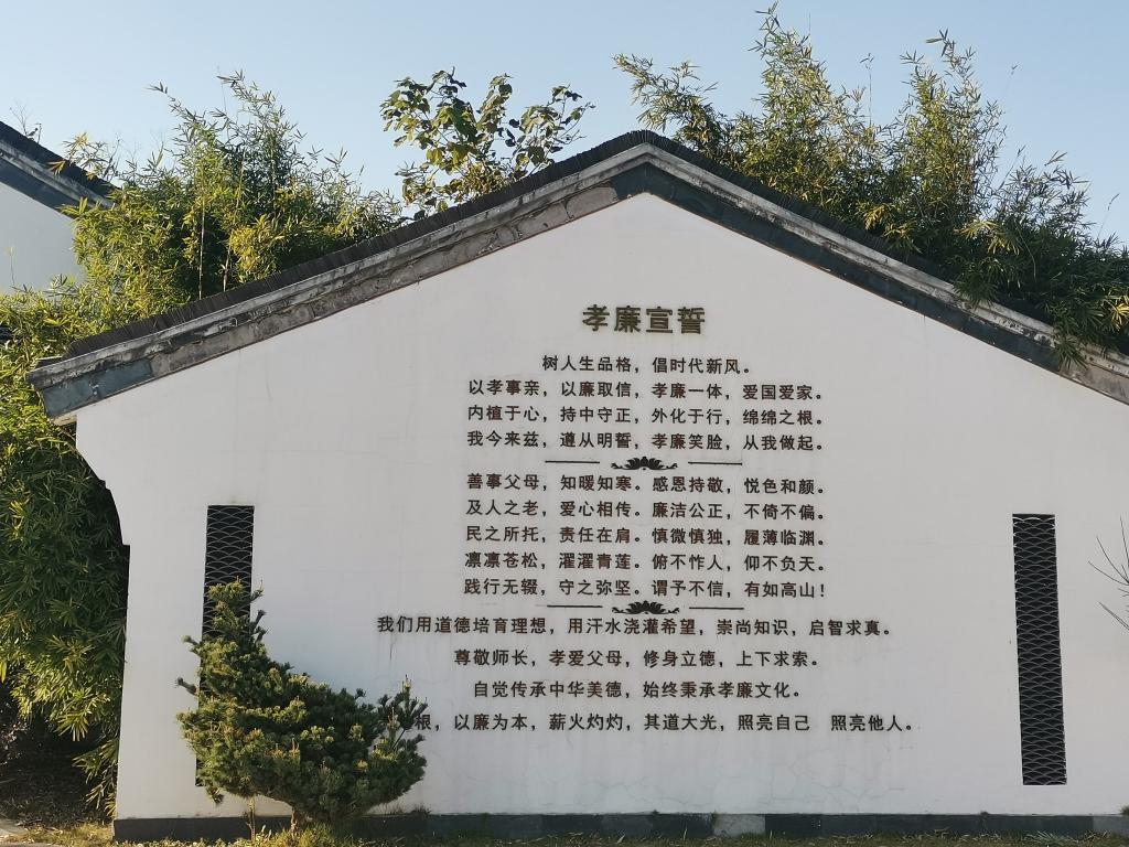 百善孝为先,治政廉为首,在讲解员的带领下,师生党员边听边看边感悟,先后参观了家训长桥和孝道文化馆。家训长桥以“传承家风家训,弘扬时代孝道”为主题,悬挂着数十块铜制浮雕,展示了孔子、梁启超、钱镠等古今名人的家风家训。孝道文化馆采用“静态展陈+动态体验”模式,通过丰富多样的图文、影像、雕塑等形式,借助高科技手段,生动形象地讲述孝道文化故事、展示孝道文化遗迹、开展孝道文化活动,使师生党员深刻体会到了孝廉文化的历史及文化内涵,理解了“廉洁是最大的忠孝”的深刻寓意。