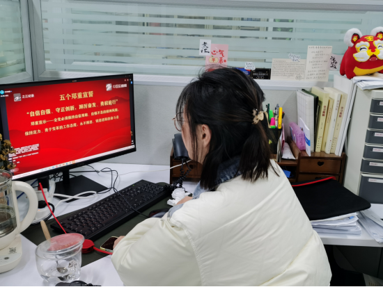 教工第四党支部书记洪雁:今天跟着浙江省委党校副校长徐明华在线学习了二十大报告,感悟很深,感慨颇多。党的二十大报告明确提出中国共产党为什么能,中国特色社会主义为什么好,归根到底是马克思主义行,是中国化时代化的马克思主义行;深刻阐明只有把马克思主义基本原理同中国具体实际相结合、同中华优秀传统文化相结合,坚持运用辩证唯物主义和历史唯物主义,才能正确回答时代和实践提出的重大问题,才能始终保持马克思主义的蓬勃生机和旺盛活力;清醒认识实践没有止境,理论创新也没有止境,不断谱写马克思主义中国化时代化新篇章,是当代中国共产党人的庄严历史责任。