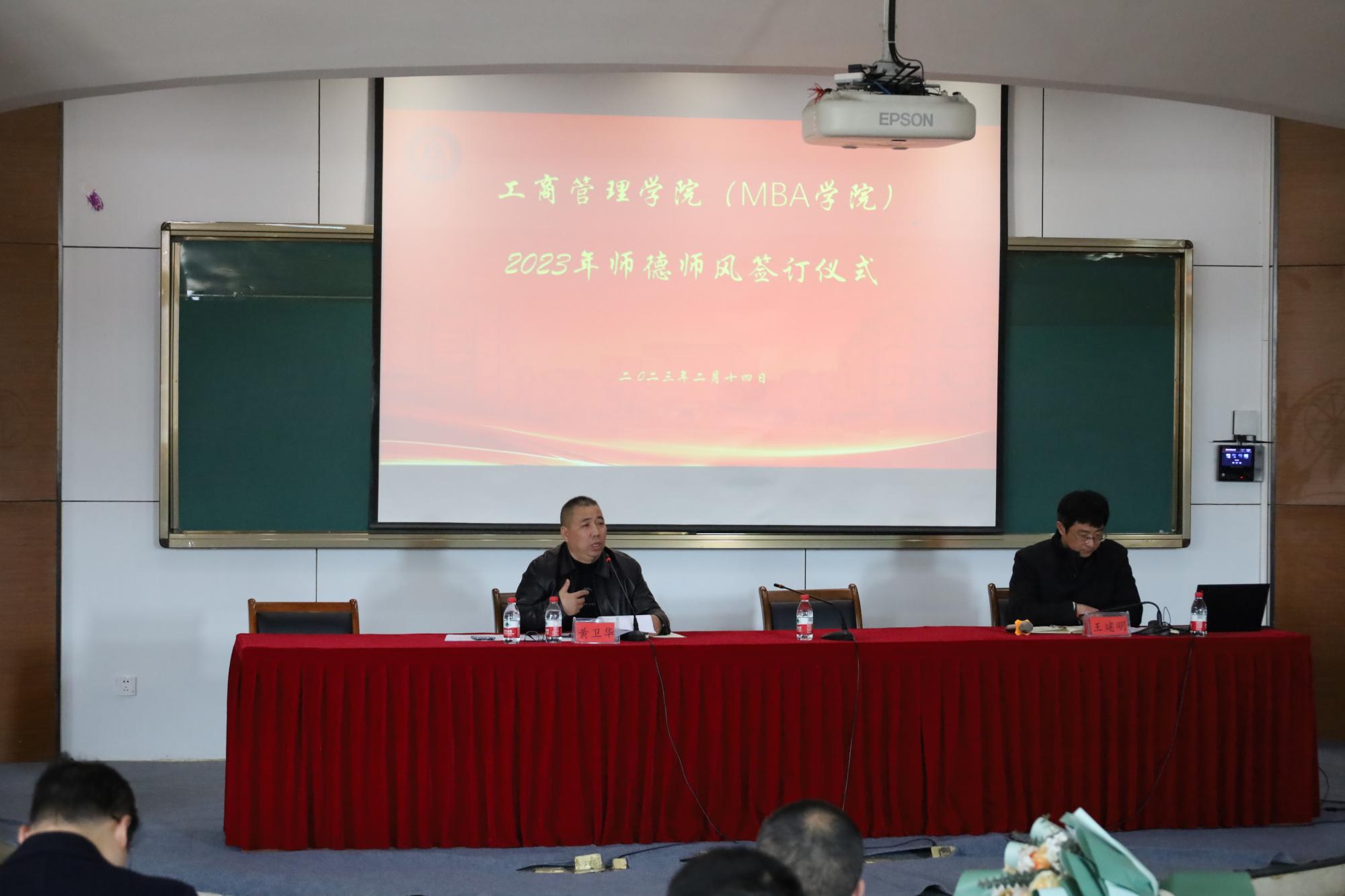 师德承诺书签订仪式的总体工作,强调了师德师风的重要性及其对学生的正向引导作用。他希望各位老师在今后的工作中能够做到认真遵守师德师风,坚定政治方向、自觉爱国守法、传播优秀文化、潜心教书育人,争当“四有”好老师。