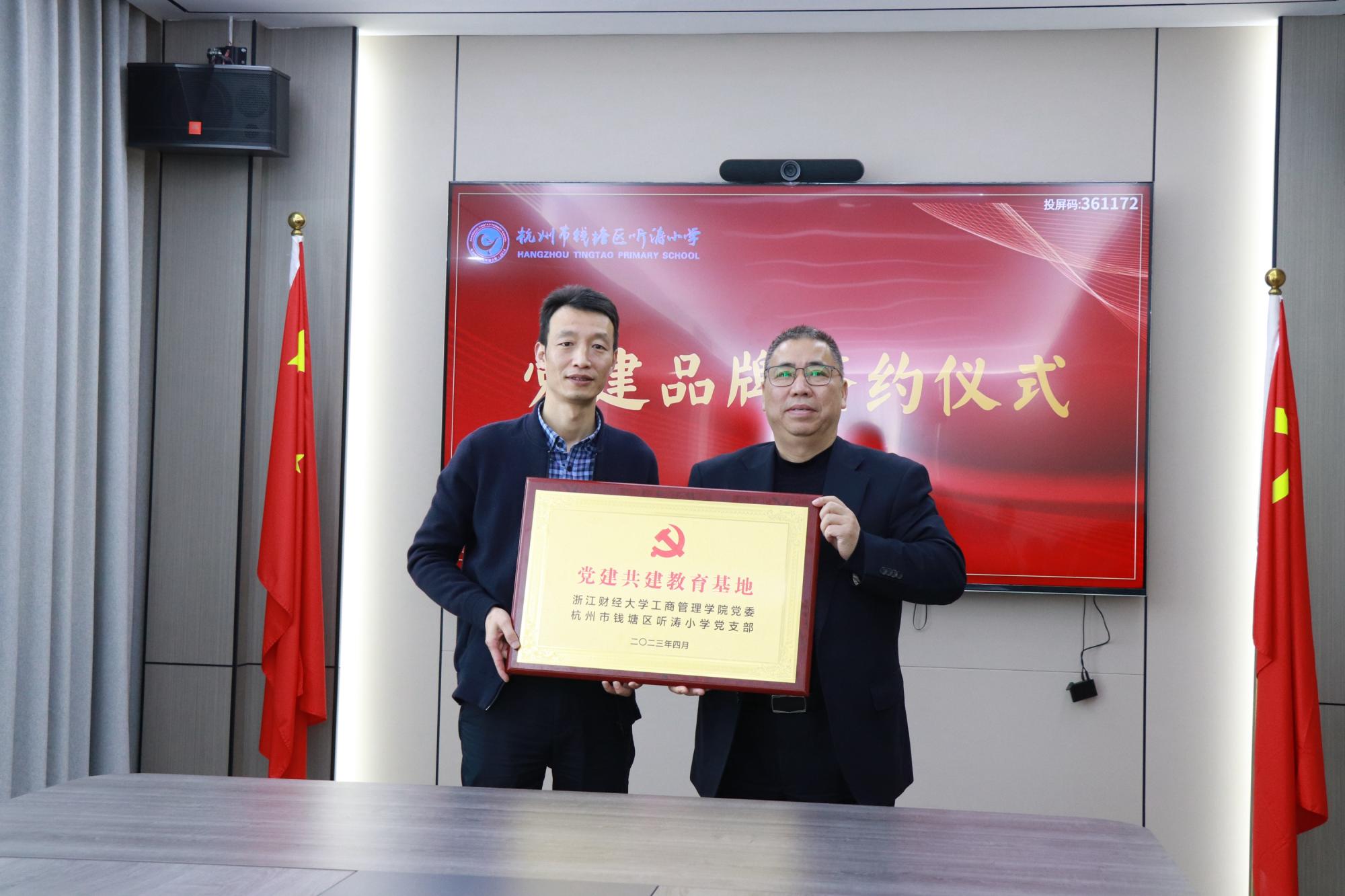 4月7日,工商六合彩预测 党委与杭州市钱塘区听涛小学党支部举行党建共建签约仪式。工商六合彩预测 党委书记黄卫华、院长王建明,六合彩预测 附属听涛小六合彩预测 长王卫华、党支部副书记、副校长王长军等出席签约仪式。