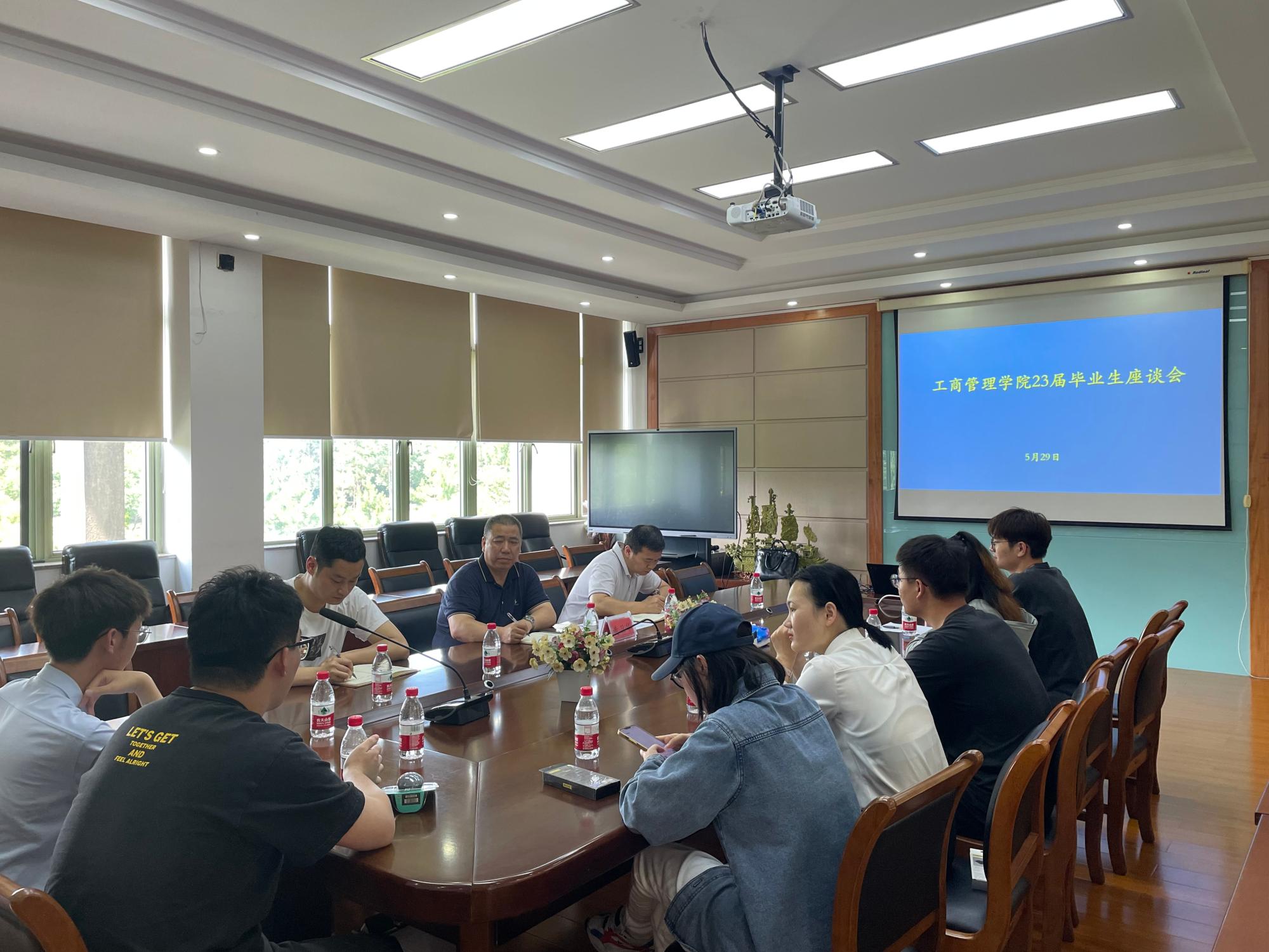 于410会议室召开2023届毕业生座谈会。院党委书记黄卫华、院党委副书记吴玻、毕业班辅导员、各毕业班代表参加座谈会。会议由吴玻副书记主持。