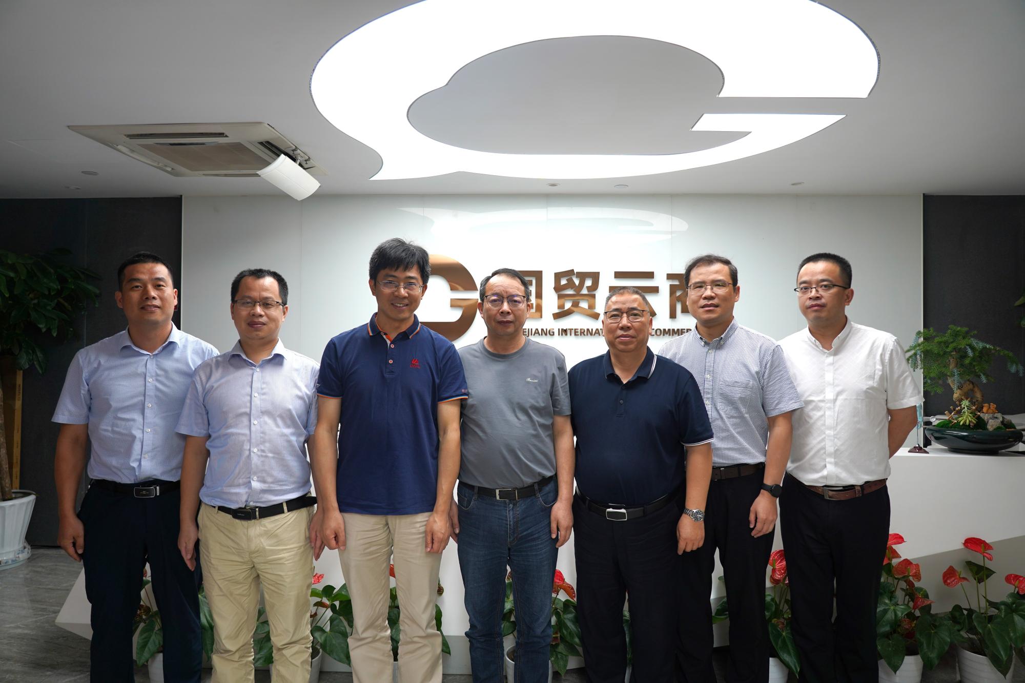 党委书记黄卫华、院长王建明、副院长戴维奇等一行四人到浙江国贸云商控股有限公司走访调研,受到浙江国贸云商控股有限公司党委书记、董事长濮志江、党委副书记、纪委书记、工会主席鲁霜慧等人的热烈欢迎。