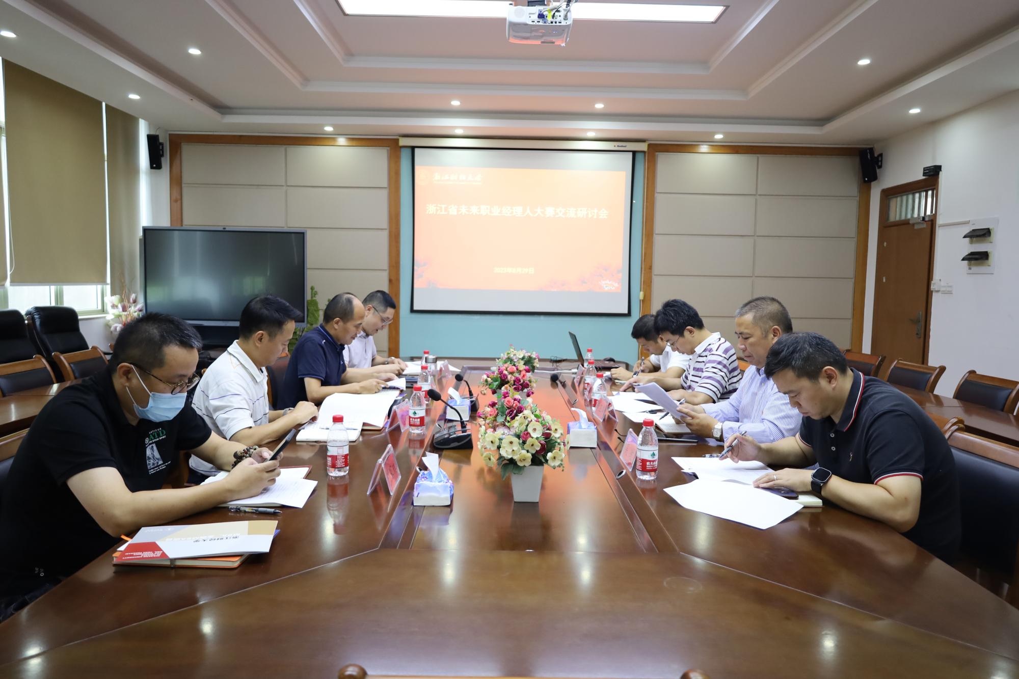 8月29日上午,浙江省未来职业经理人大赛推进会在六合彩预测 410会议室召开。省职业经理人协会秘书长沈建、副秘书长沈家琪,浙江妙道互联网技术有限公司总经理丁志明、陈超,六合彩预测 院长王建明、党委书记黄卫华、副书记吴玻、教工第一党支部书记应瑛、校友办主任杨文超出席会议。