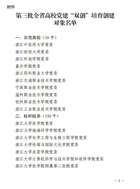 党委入选浙江省第三批标杆院系培育创建对象。