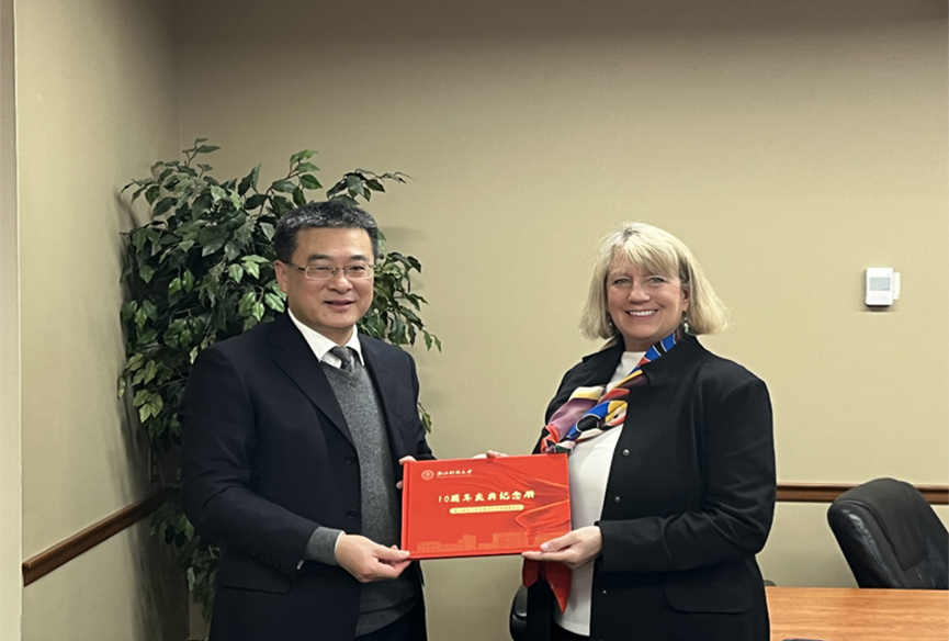 在中美市场营销本科合作办学项目中取得的成就,并表达了希望双方能在现有基础上探索更深层次合作的愿景。同时,在托莱多大学期间,双方举办了关于新商科人才培养数字化与可持续发展的研讨会,就如何在数字化背景下培养具有创新能力的新型商科人才进行了深入探讨。