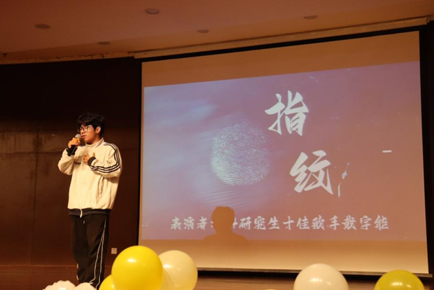 24研究生十佳歌手戴宇能为我们带来了歌曲《指纹》,他温暖的嗓音让演唱充满深情与细腻,好似一段内心的独白,深深烙印在观众的心田。