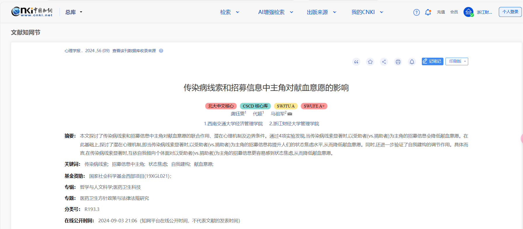 论文题目:传染病线索和招募信息中主角对献血意愿的影响