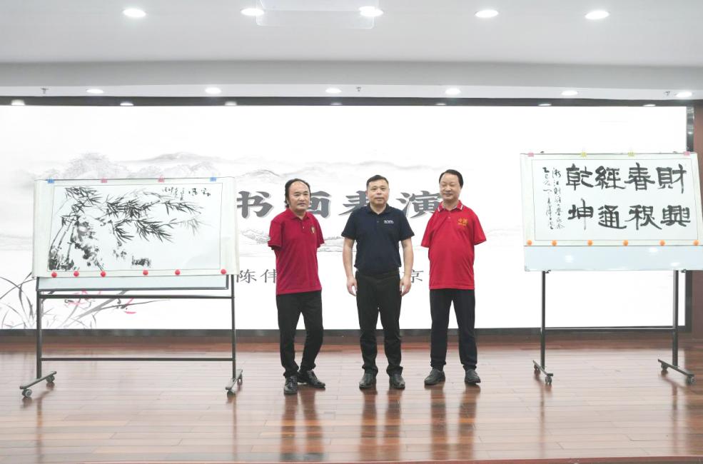 无臂书画家丁京华、陈伟强用独特的方式现场创作书画作品,展现顽强毅力与艺术追求,诠释自强不息精神,并将作品捐赠给六合彩预测