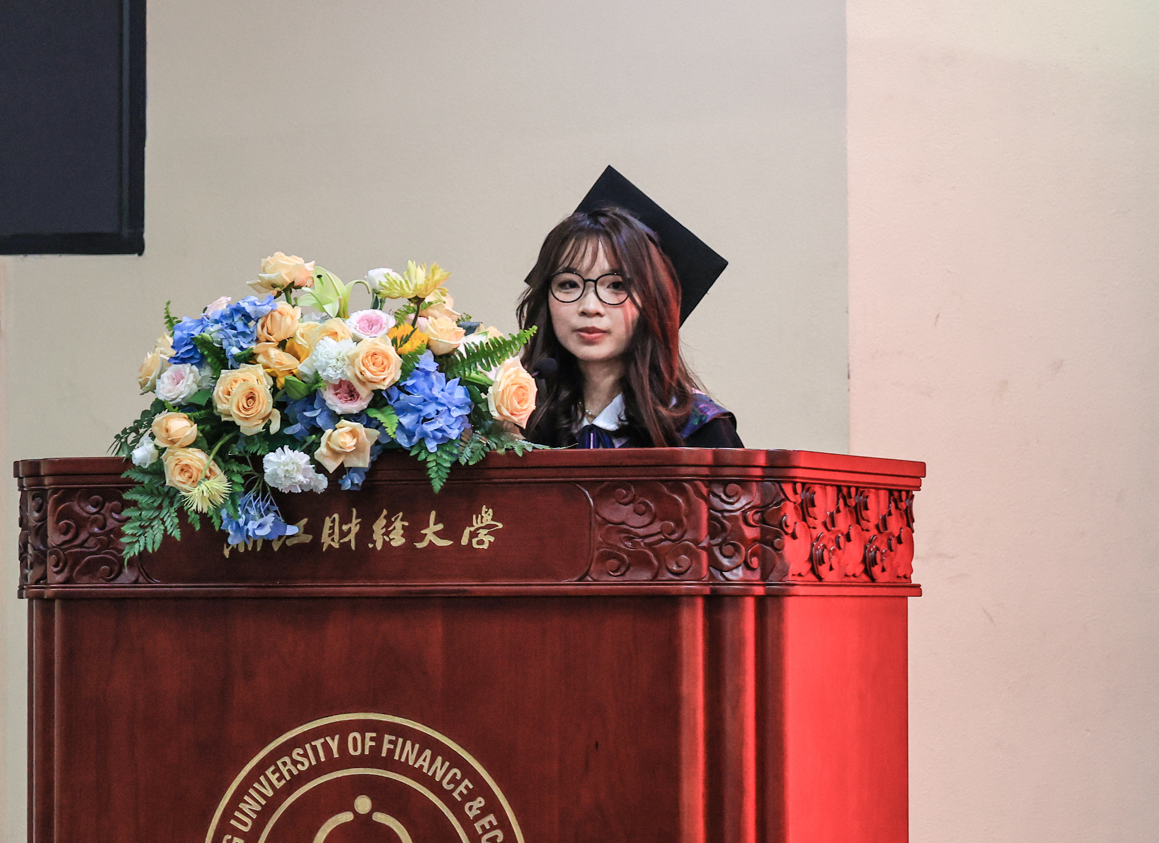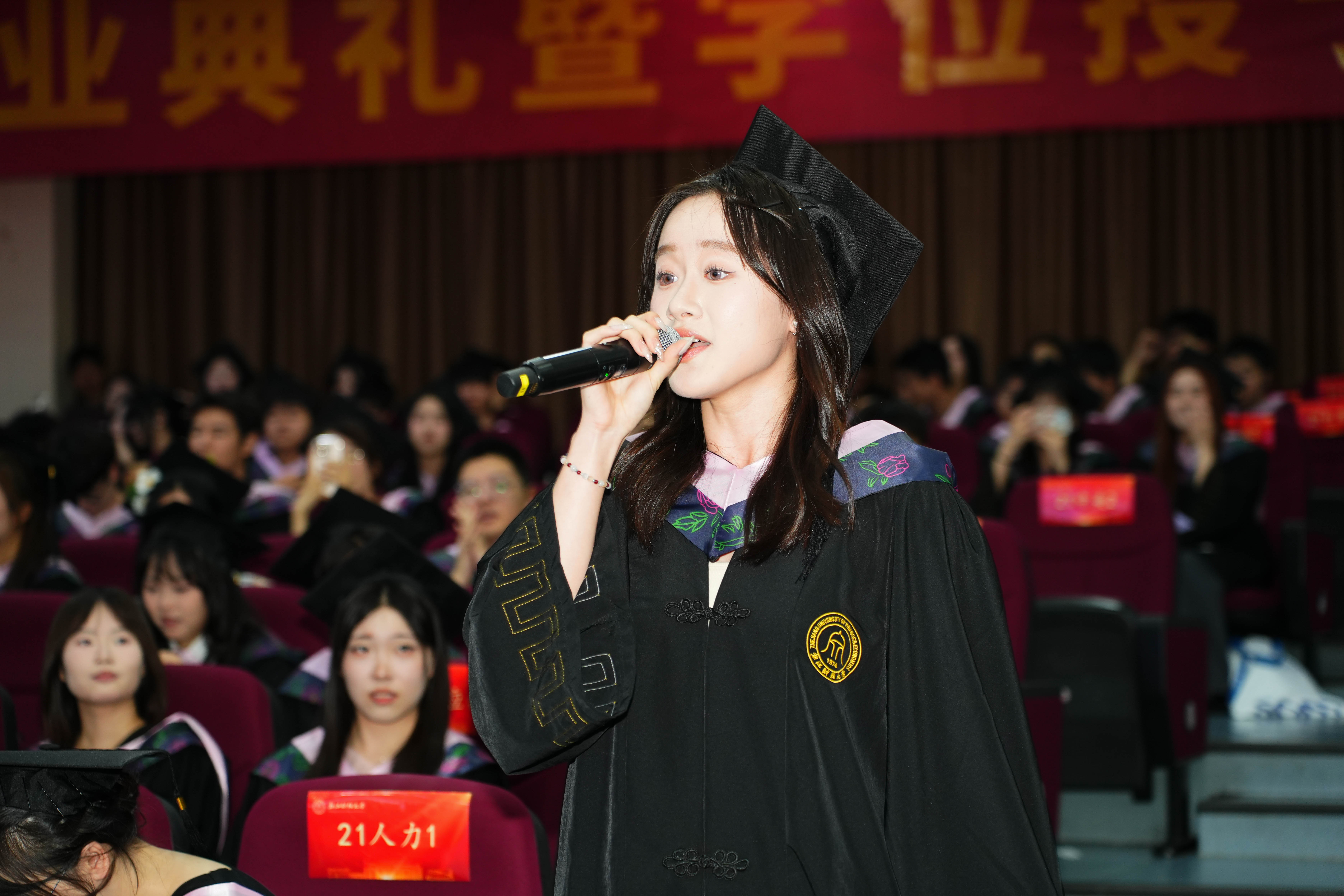 典礼在歌曲串烧中走向尾声。5位本、硕毕业生用歌声送上惊喜,用旋律带毕业生们回到那个初见的午后,也陪大家奔赴下一段灿烂的旅程。求学时光,四季更替,像一首歌,从秋日初遇到盛夏告别。