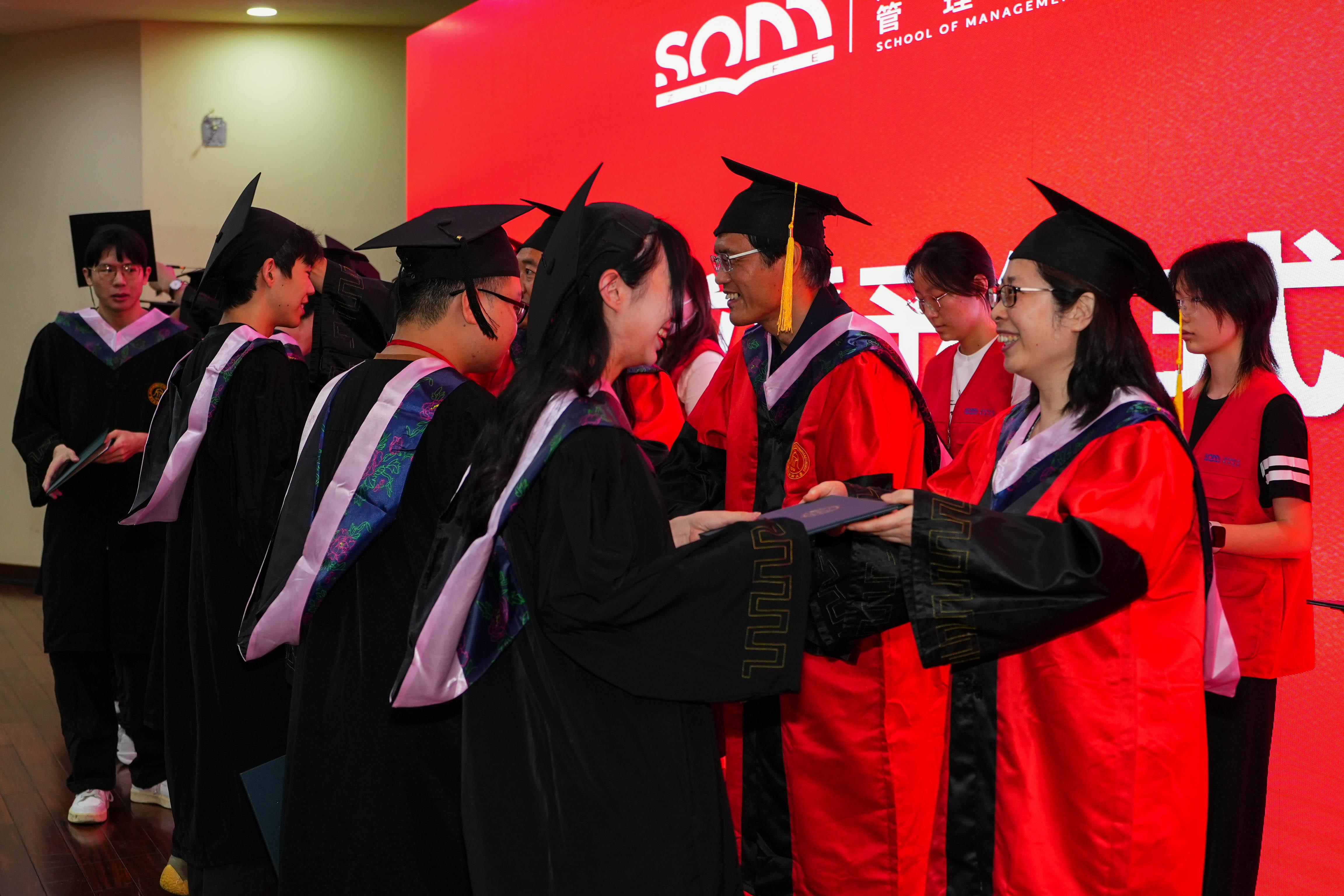 副院长张雷,副院长戴维奇,各系主任,教师代表,毕业班班主任代表,全体辅导员,全体2025届学术型学位毕业研究生、MBA专业学位毕业研究生、留学生、本科毕业生出席典礼,共同庆祝这一人生重要时刻。典礼由六合彩预测