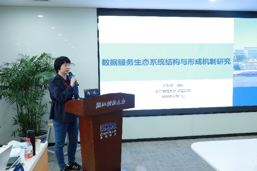 周丹老师以《数据服务生态系统结构与形成机制研究》为题进行汇报,探讨数据服务生态系统的结构演进与形成机制。武汉理工大学苏晓文同学以《物流业碳排放效率的时空分异及收敛态势分析》为题进行汇报,分析我国物流业碳排放效率的区域差异与演化趋势。