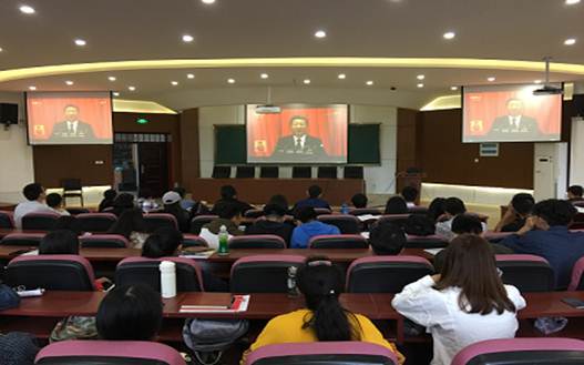 师生凝神静听习近平同志代表第十八届中央委员会向大会所作的报告,报告提出的宏伟发展蓝图让师生倍感振奋。党的十九大是新的历史条件下全党继续夺取中国特色社会主义伟大胜利,决胜全面建成小康社会、进而全面建设社会主义现代化强国的大会,全面回顾、总结了党的十八大以来的实践和经验,进一步明确今后一个时期的发展目标和宏伟蓝图,进一步动员全党全国各族人民坚定不移沿着中国特色社会主义道路前进。