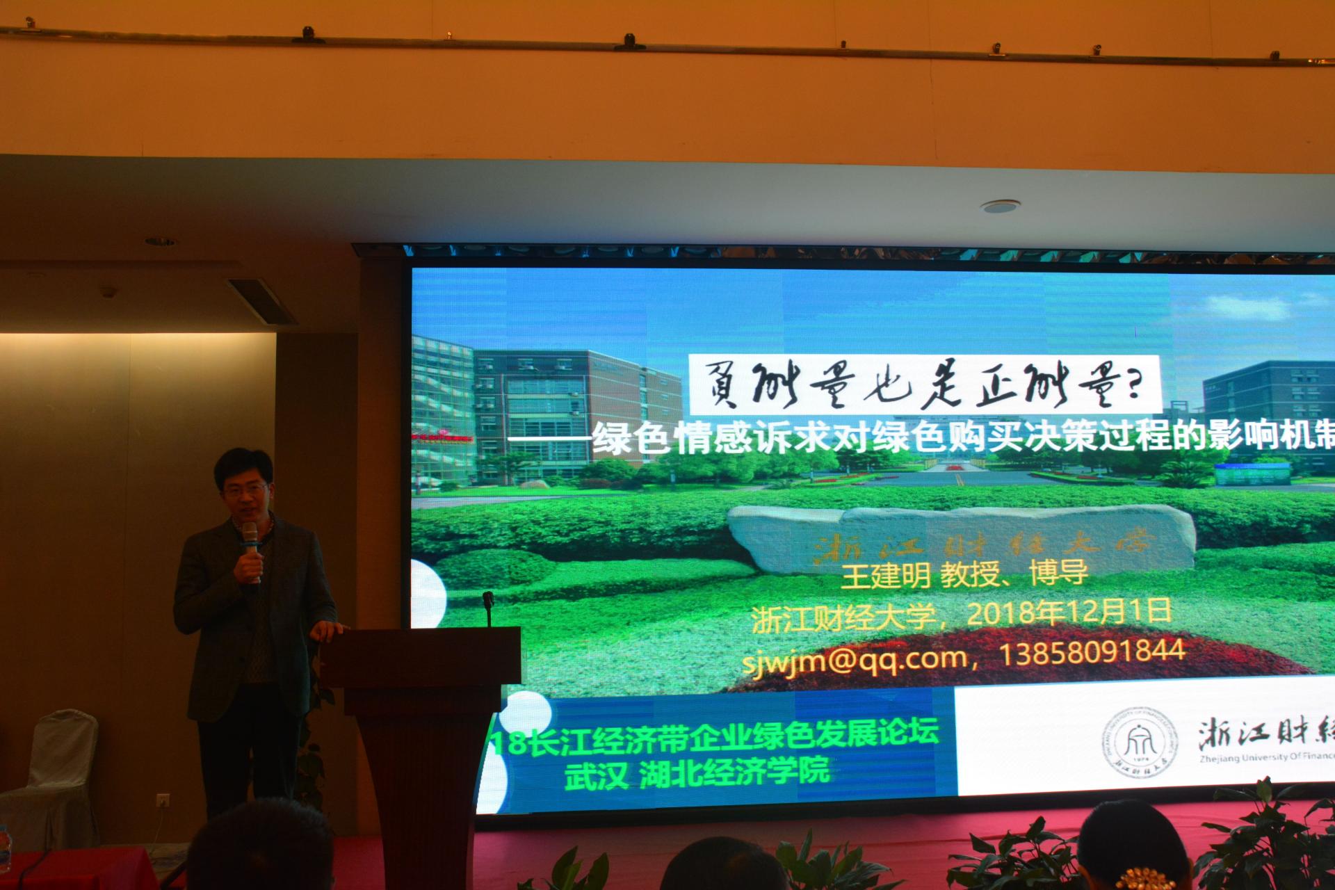 王建明教授应邀参加了此次会议,并在会上从绿色消费的角度向与会者报告了“绿色情感诉求对绿色购买决策过程的影响机制”论文,分享了企业施行绿色营销的具体研究成果,受到与会者的高度关注和积极反响。