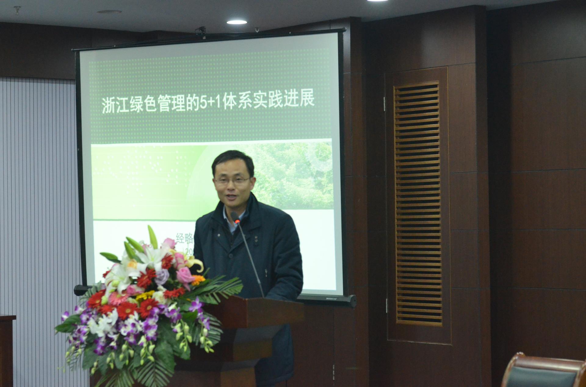 在主题演讲环节,经略视界总经理(原浙江省经济信息中心生态处原处长)魏伟忠先生,以“浙江绿色管理5+1体系实践”为主题进行演讲。魏总的演讲内容主要分为两部分:绿色管理的宏观理解以及浙江基于5+1体系逻辑的绿色管理实践案例,即从政策演化、路径方法两个维度来关注浙江绿色发展、绿色管理。魏总指出,迈向绿色化的三大路径为制度设计绿色化、生产方式绿色化、生活方式绿色化;生态文明建设有个“12345”,1是指一个理念,即绿色发展理念,2是指两山意识,即树立绿水青山就是金山银山的强烈意识,3是指三条途径,即绿色发展、循环发展、低碳发展,4是指四大领域,即生态经济、生态环境、生态文化、生态制度,5是指五大重点,即绿色空间、绿色经济、绿色环境、绿色资源、绿色制度;浙江绿色管理实践遵循五大重点建立5+1体系,即五大重点+绿色项目。魏总结合浙江绿色实践,对浙江的绿色空间建设、绿色经济、绿色制度及绿色项目实践一一进行了介绍与剖析,如创建生态文明先行示范区、推动地方绿色化发展探索、推进大花园建设、推动节能环保产业发展、推动环境污染第三方治理实践以及浙江对绿色资源的布局、利用和发展的实践。湖州师范六合彩预测