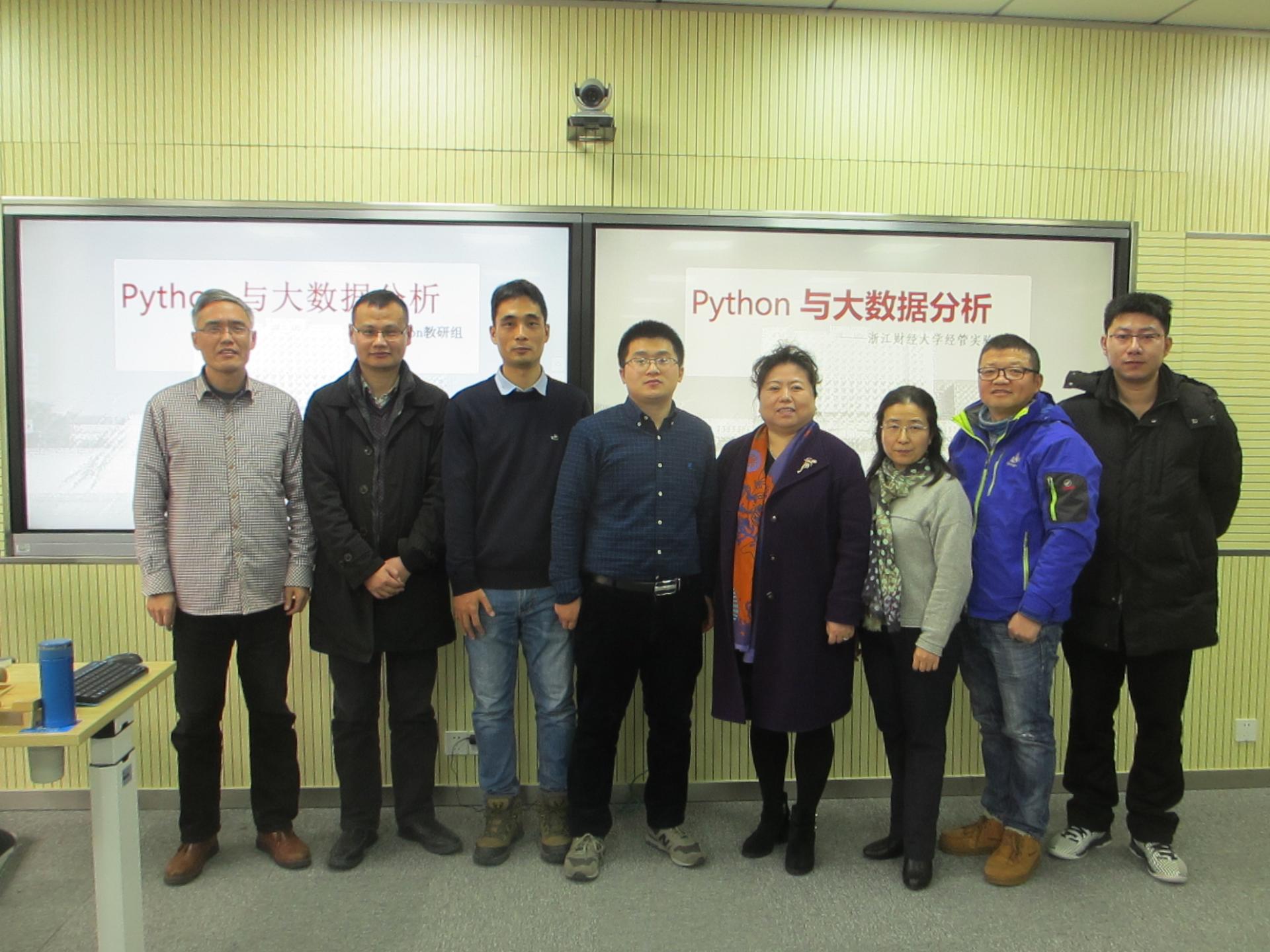 本次培训由经管实验中心的郑胄强和图书馆的田灿伟两位老师全程主讲,培训地点设在F楼305先进的多媒体实验室。郑老师和田教师的精心准备,认真的讲解,极大地激发起听课老师们的兴趣和Python学习的热情。