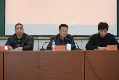 新任正职分别作表态发言。王建明院长表示坚决拥护校党委的决定,衷心感谢组织的培养和信任。在新的工作岗位上,将坚定政治立场,牢记初心使命,与班子成员、全体教工一起努力,力争在博士申报、科研项目突破、各项事业发展等方面有所突破。