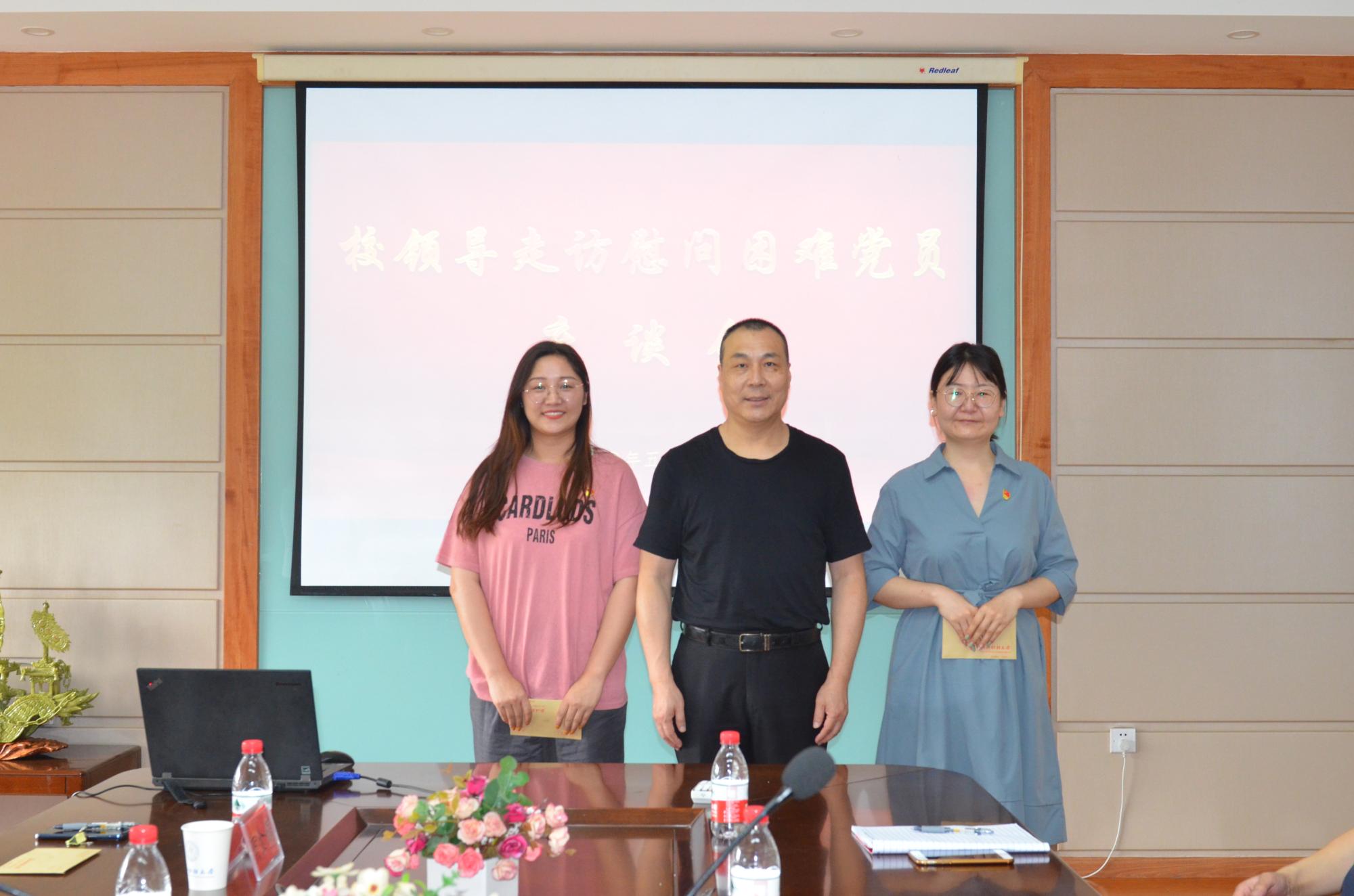 ,走访慰问了困难教工党员阿尔帕提古丽·斯马义和困难学生党员任艳秋。校党委组织部、党校办等相关人员陪同慰问。
