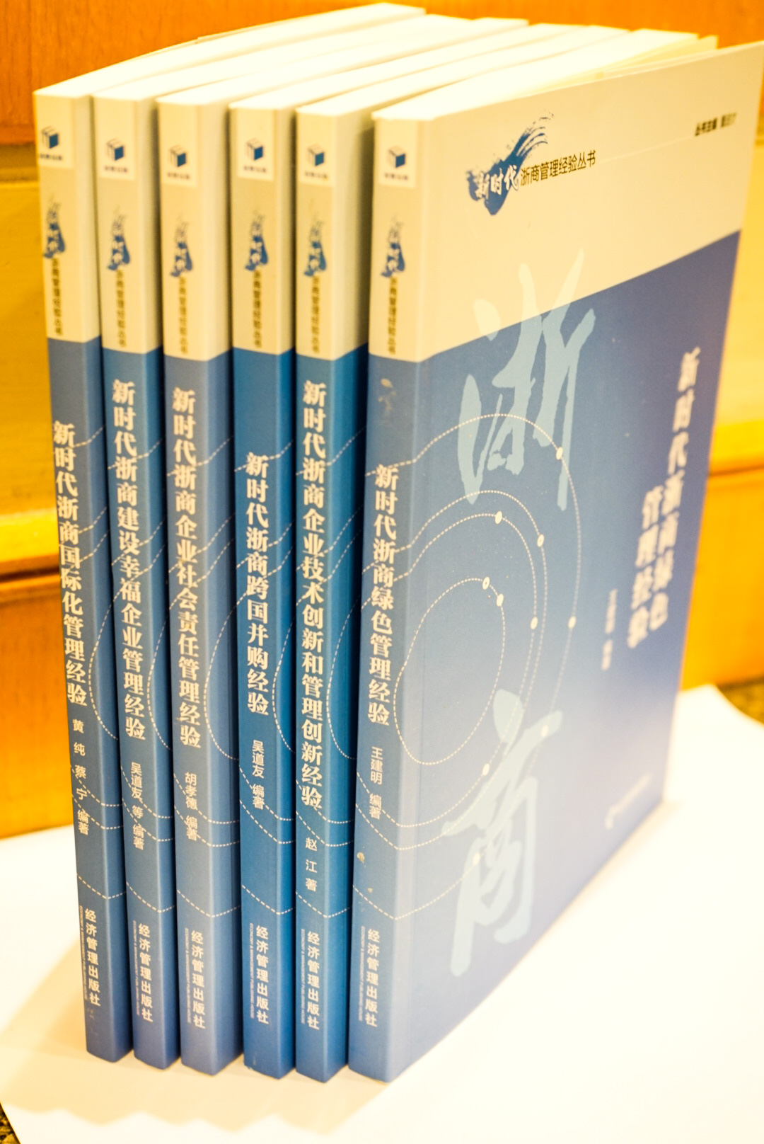 )的中青年教授和博士担任主编,具体包括:“新时代浙商企业技术和创新管理经验”,“新时代浙商文化科技融合经验”,“新时代浙商互联网+营销管理经验”,“新时代浙商跨国并购协同整合管理经验”,“新时代浙商绿色管理经验”,“新时代浙商社会责任管理经验”,“新时代浙商国际化经营管理经验”,“新时代浙商互联网+制造管理经验”,“新时代浙商知识管理经验”,“新时代浙商商业模式创新经验”,“新时代浙商转型和管理升级经验”,“新时代浙商转型和营销升级经验”等等。丛书一共18本,目前第一辑已出版五本。