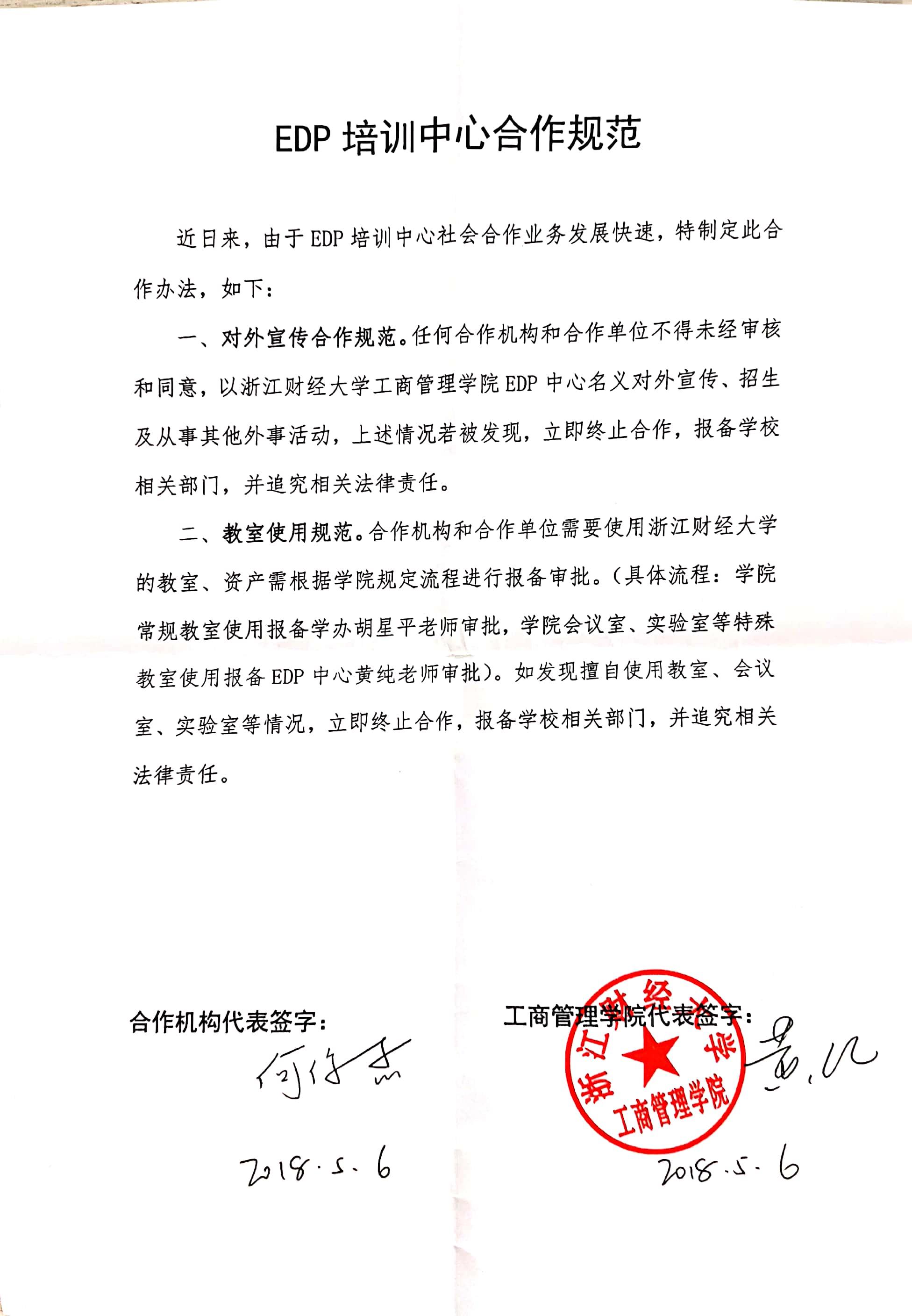 EDP培训中心合作规范