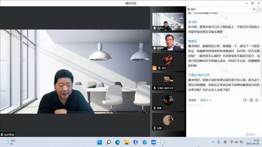 互动环节气氛热烈,夏军教授认为之所以在Colquitt(2007)中引入新构念的理论贡献大于构建新的构念之间的关系,是因为学界更偏向于理论精细化而非创造新理论,而构念的引入是否成功关键在于其与原有理论之间的适配性,这为师生们都提供了有益的思考。