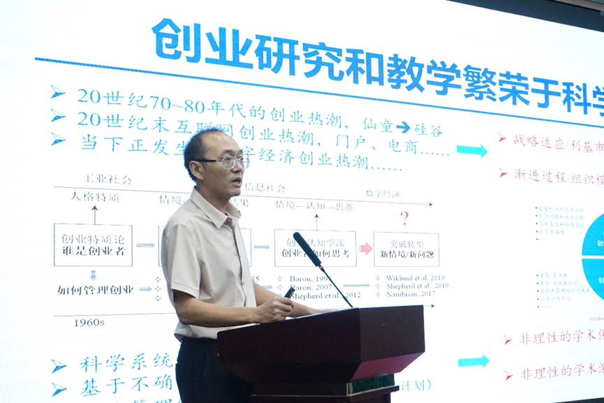 肖静华教授,结合自身与企业深度互动共创研究成果的丰富经验,带来了题为“与企业共研共创,探索基于中国实践的理论”的主题报告,从共研共创的基础、机制和方式三个方面阐述研究者如何与企业家、管理者建立长期的合作,并形成有价值的研究成果。张玉利教授联合刘依冉博士发布了《全国高校双创教育教师调查报告》(以下简称《报告》)。为切实提升创业课程教学的有效性,真正发挥集体磨课的共创性,张玉利教授带领团队对全国31个省市自治区的1233名高校双创教师展开了调查研究。《报告》从创新创业授课教师队伍、知识体系、教学方法以及所处阶段等多个方面进行了一一分析,呈现出我国创新创业教育教师的真实面貌。之后,他就本次会议的具体安排做出说明,希望创新创业教育能从商六合彩预测