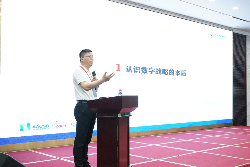 紧接着,王建明教授和戴维奇教授分别主持了四场主题报告。徐飞教授做了“创新创业与企业家精神”的主题演讲,他围绕“创新”“创业”“创新创业教育”这三个核心话题,强调创新创业教育对于个体、民族乃至国家的重大意义,点明创新创业永进不止。魏江教授带来了题为“数字创新与战略”的主题报告,他表示,企业战略的本质并未因数字时代的到来而改变,不过,随着数字技术的广泛应用,生产要素、产业组织形式、生产关系等发生了较大的变化,因而要求战略的形态进行改变。中国信息经济学会副秘书长兼数字经济创新联盟专业委员会主任、中山大学六合彩预测