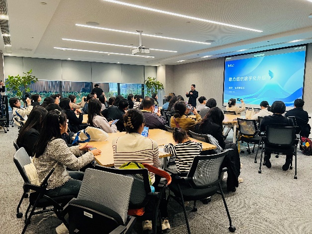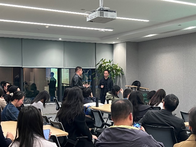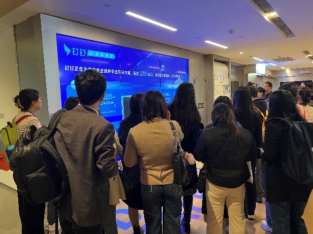 在听取两位负责人的详细介绍之后,参访团老师与他们进行了互动,提出了“钉钉是如何为特定客户开展定制化服务的?”“钉钉能否赋能组织人力资源管理?”“钉钉在不同场景如医疗领域是如何应用的?”“钉钉在服务用户的过程中是如何与服务商协同的?”“钉钉在解决高校就业问题方面的能力如何?”“钉钉当前的国际化布局是什么样的?”等诸多问题。两位钉钉负责人从普惠与个性化需求的平衡、AI招聘助理提高HR效率、医疗知识库共享、不同类型服务商差异化协同与管理模式、赋能校企合作提升就业率、海外市场本地化战略等方面对老师们提出的问题进行了一一解答,现场气氛十分活跃。