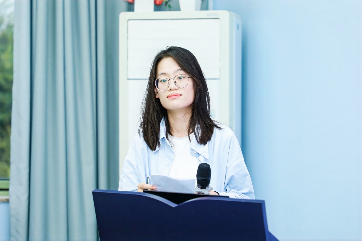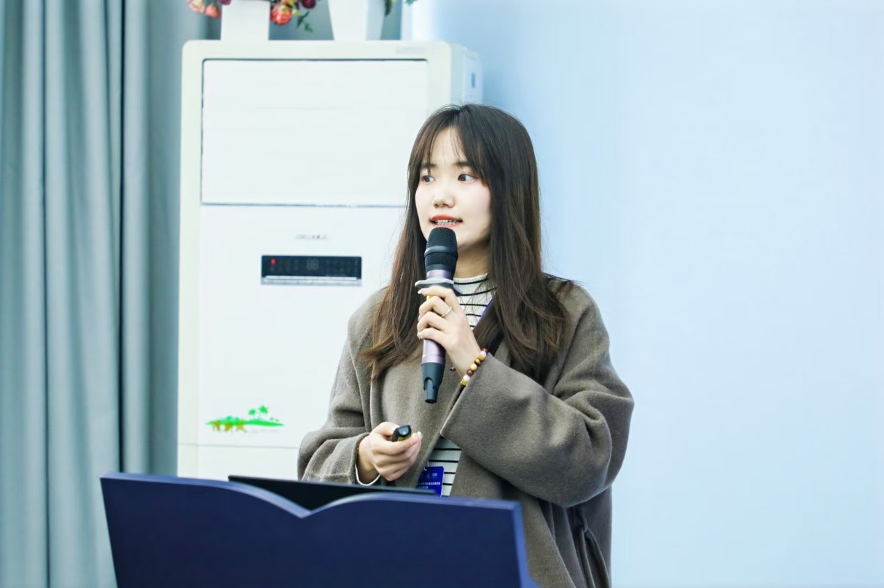 第七位汇报者是来自河北工业大学的杨丹丹。她作了题为“组织惯例变革:人机协同场景如何驱动制造企业新质生产力涌现”的论文汇报。她通过说明人机协同场景驱动企业新质生产力涌现的优势及产生的问题,引入组织惯例理论视角去解释相关过程。文章研究围绕河钢集团有限公司的数智化转型实践,探究人机协同场景下制造企业通过组织惯例变革来推动新质生产力的内在机理。