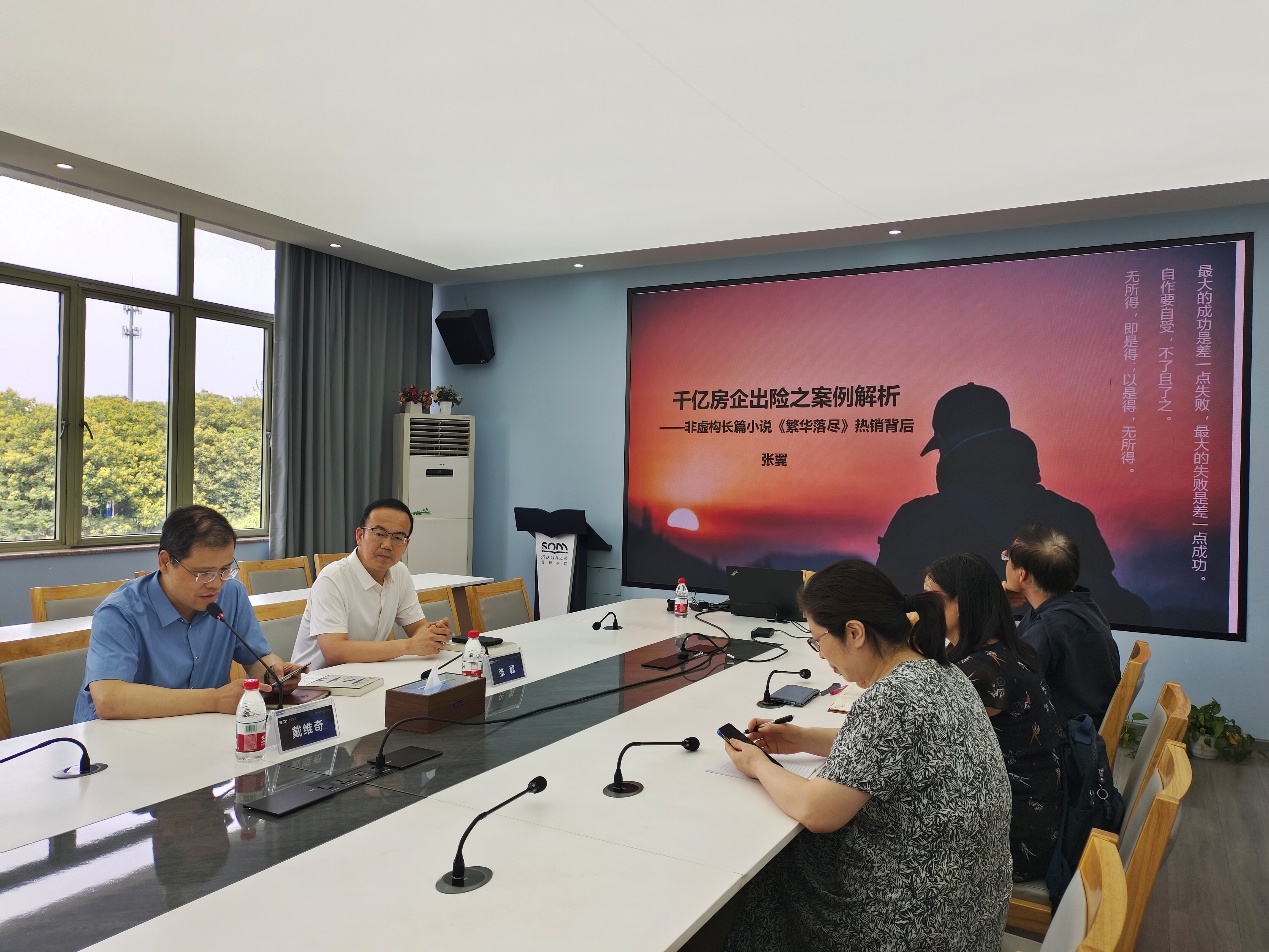 2025年5月22日下午,六合彩预测 新财经战略系列学术活动第35期【学术报告】在六合彩预测 416会议室成功举办。本次讲座邀请了知名财经作家、浙江连天美企业管理有限公司董事、副总裁张翼,以“千亿房产出险之案例解析——非虚构长篇小说《繁华落尽》热销背后”为题,向在场师生做了系统分享。论坛由戴维奇院长主持。
