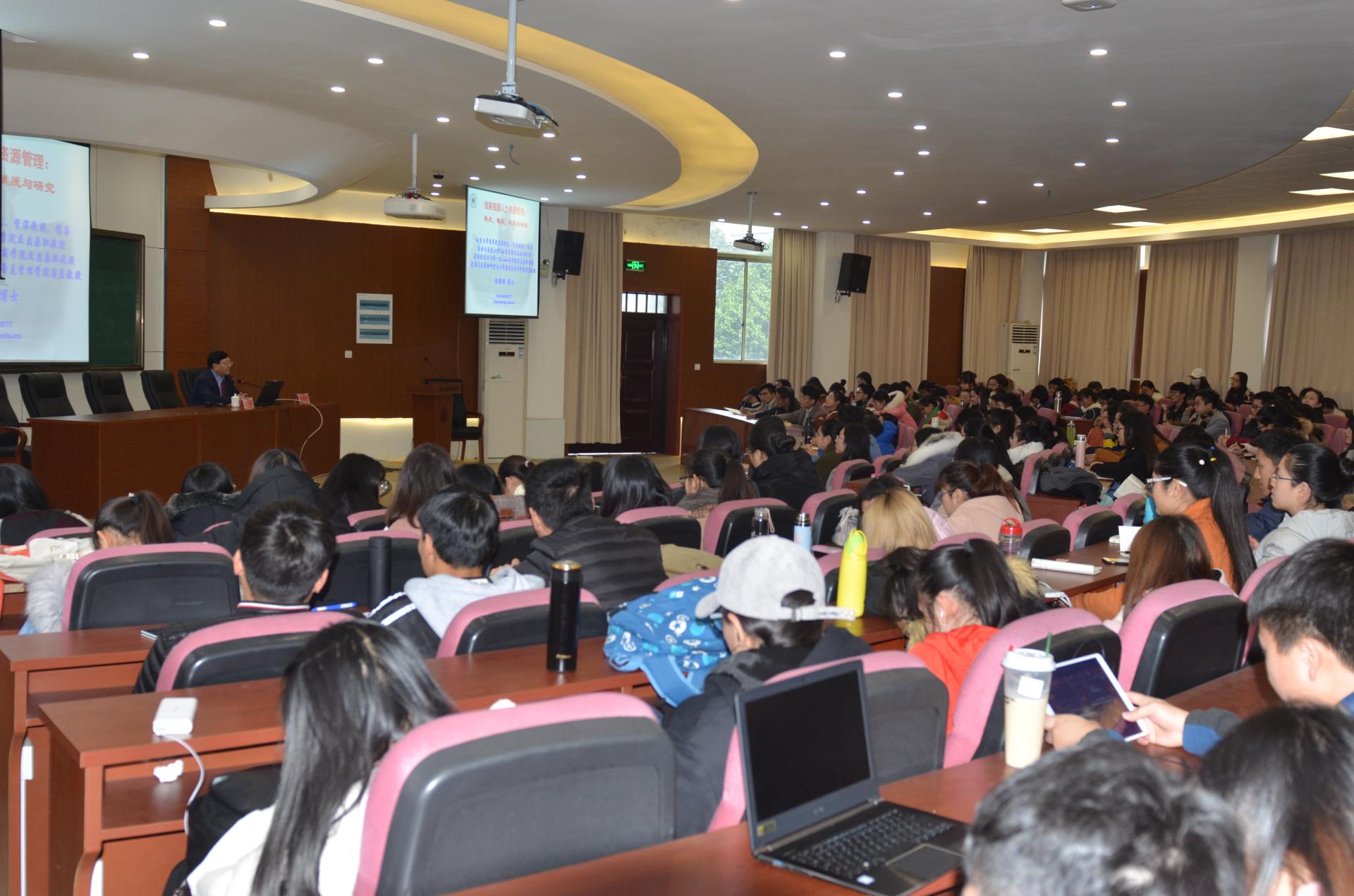 师生做了一场题为“当前人力资源管理热点、难点、挑战与研究”的讲座。能够容纳150人的报告厅座无虚席,还添加了不少椅子,主持人王建明教授不禁感叹:“大师出场,自带光环”。