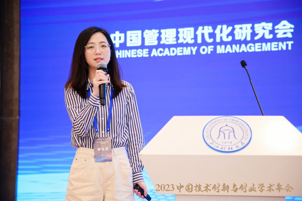 的胡双,她的报告题目为“高管团队的创业导向、企业的数字化转型与创新绩效”。研究着重探讨:以企业CEO为核心的高管团队的创业导向以及其企业层面的后果。并将企业数字化转型、高管团队的创业导向等核心构念进行了细致区分。她认为,创新是推动国家经济改革和发展的重要力量,企业应承担并发挥创新主体的作用。