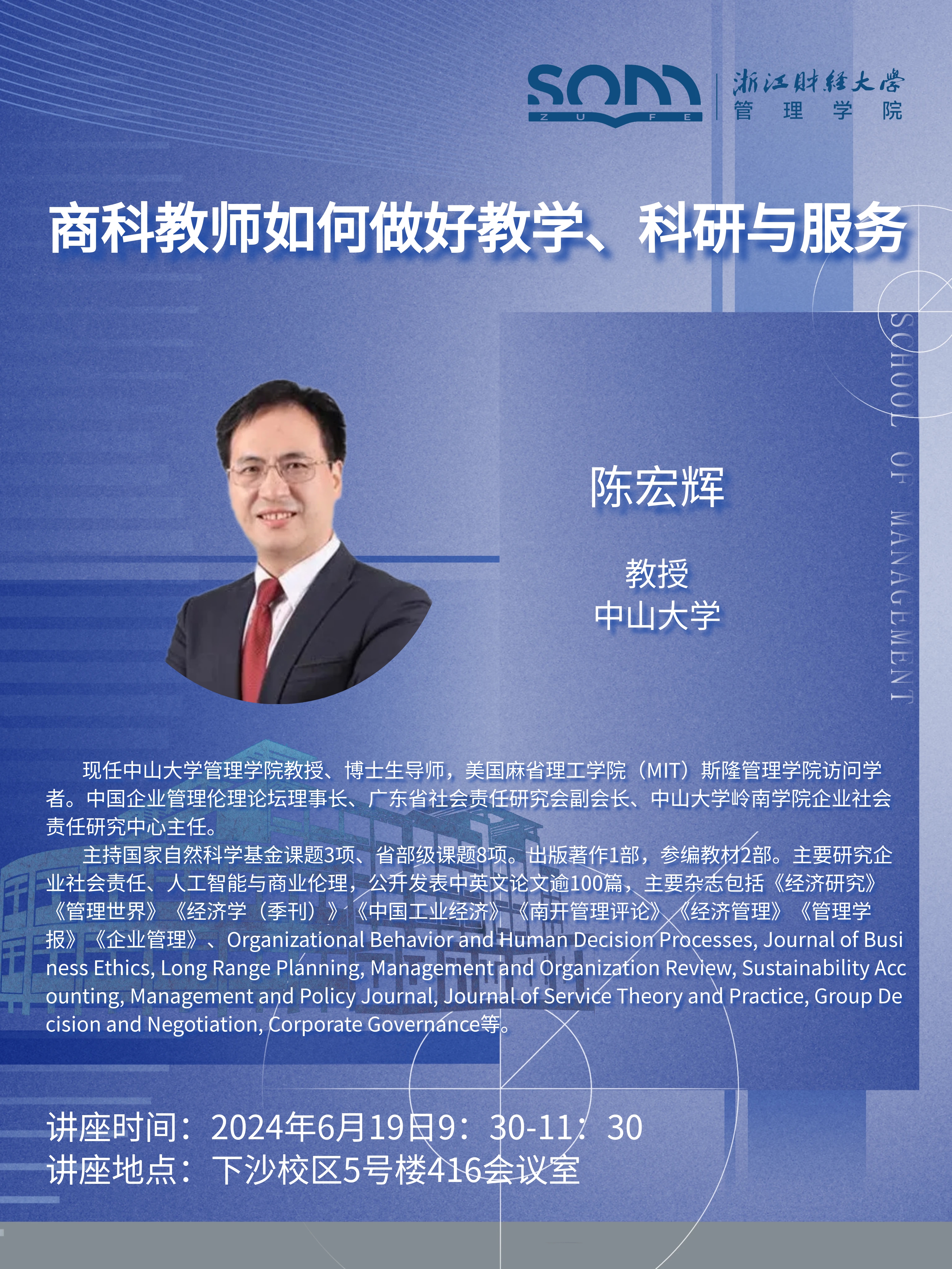 【讲座预告】陈宏辉:商科教师如何做好教学、科研与服务