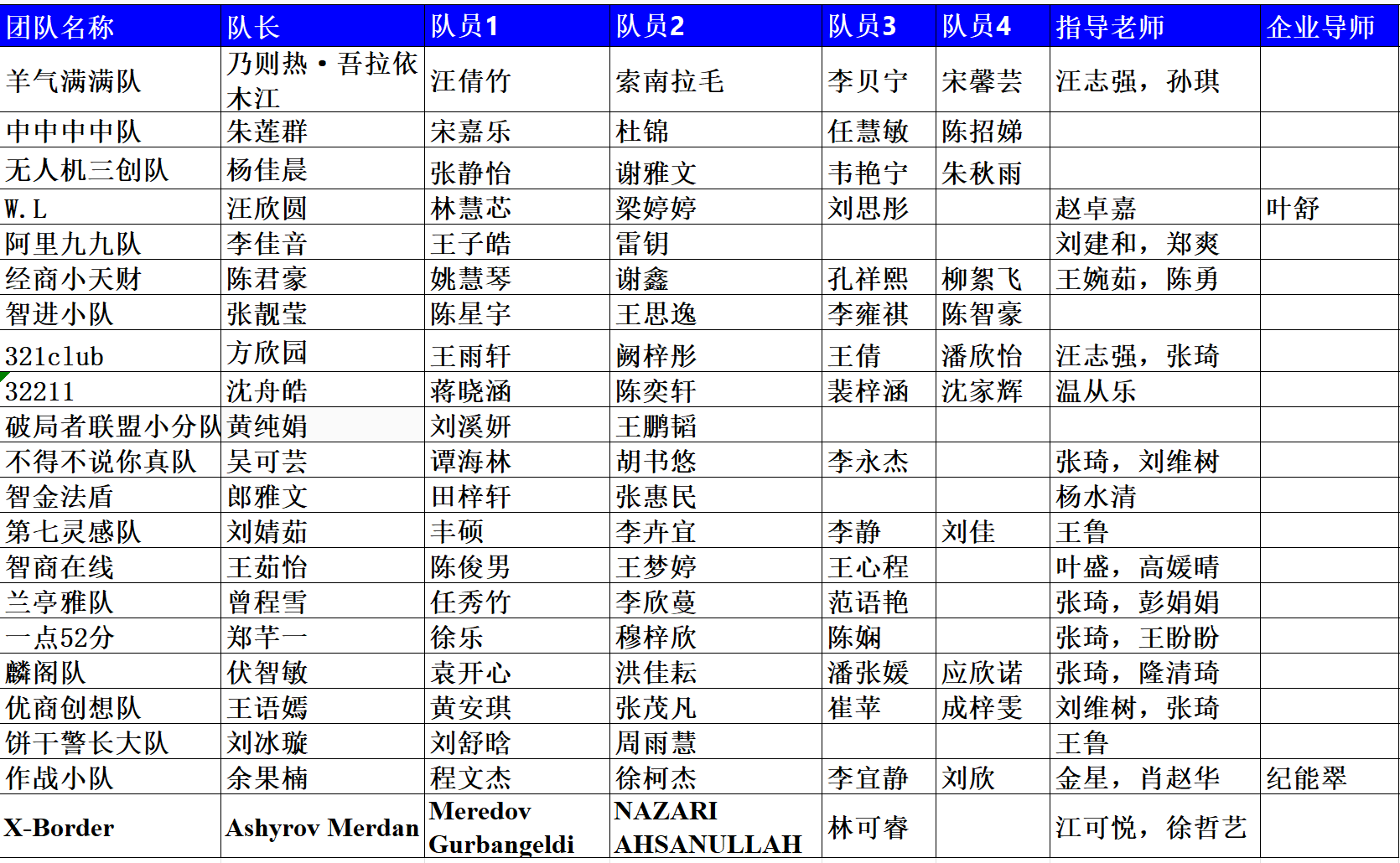 各参赛队: