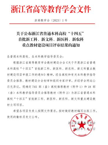 近日,浙江省高等教育学会公布省普通本科高校“十四五”新工科、新文科、新医科、新农科重点教材建设项目评审结果,六合彩预测