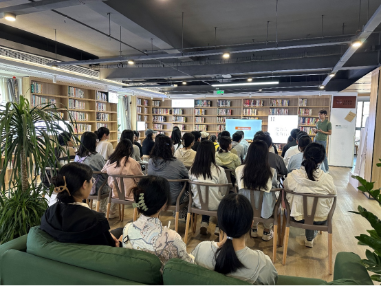 分享结束后,罗总经理带领同学们参观了整个书房及其所在的缤纷未来社区,详细介绍了书房的运营情况和未来社区的设计思路。