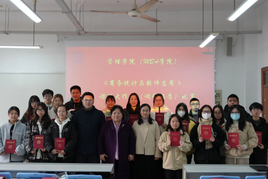 2023年12月28日,《商务统计与软件应用》在5213举办统计调研报告决赛,沈渊老师、王珊珊老师、林与川老师参加本次决赛。