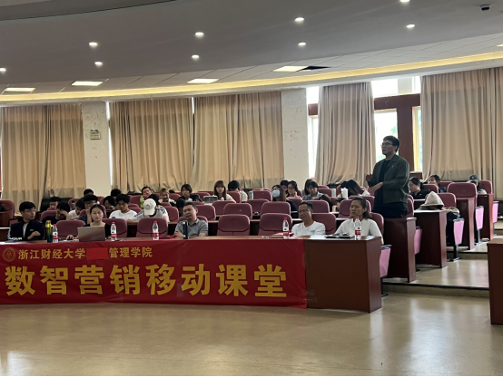 程登军老师、李丽霞老师和21市营、22工商类、22艺术经济、22视觉传达设计等班级110余位同学参与本次数智营销移动课堂。