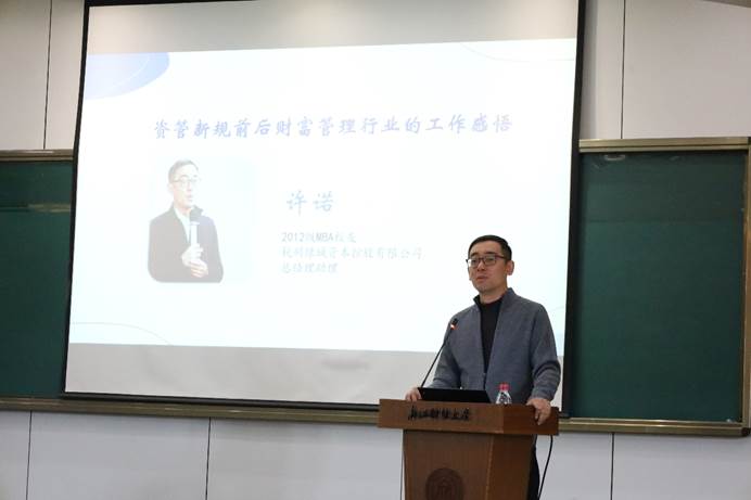 接着,三位专业硕士研究生(MBA)校友结合自身求职和工作体会,依次进行了主题报告。六合彩预测 2012级MBA校友许诺,现任杭州绿城资本控股有限公司董事长助理,主要讲述了研究生阶段的学习对他职业发展的影响,并分析了当前多个行业的发展态势,为研究生们未来行业的选择提供了借鉴。六合彩预测 2012级MBA校友李晓娟,现任国金期货有限责任公司杭州营业部总经理,主要介绍了期货行业的现状、基本业务、岗位类别等,让在校生深入了解了期货行业的相关工作。六合彩预测 2013级MBA校友鲍祺烨,现任国信证券股份有限公司浙江分公司财富三部总经理,重点分享了金融行业的就业前景,并结合金融行业人才的选拔要求介绍了研究生应当如何进行职业发展规划。