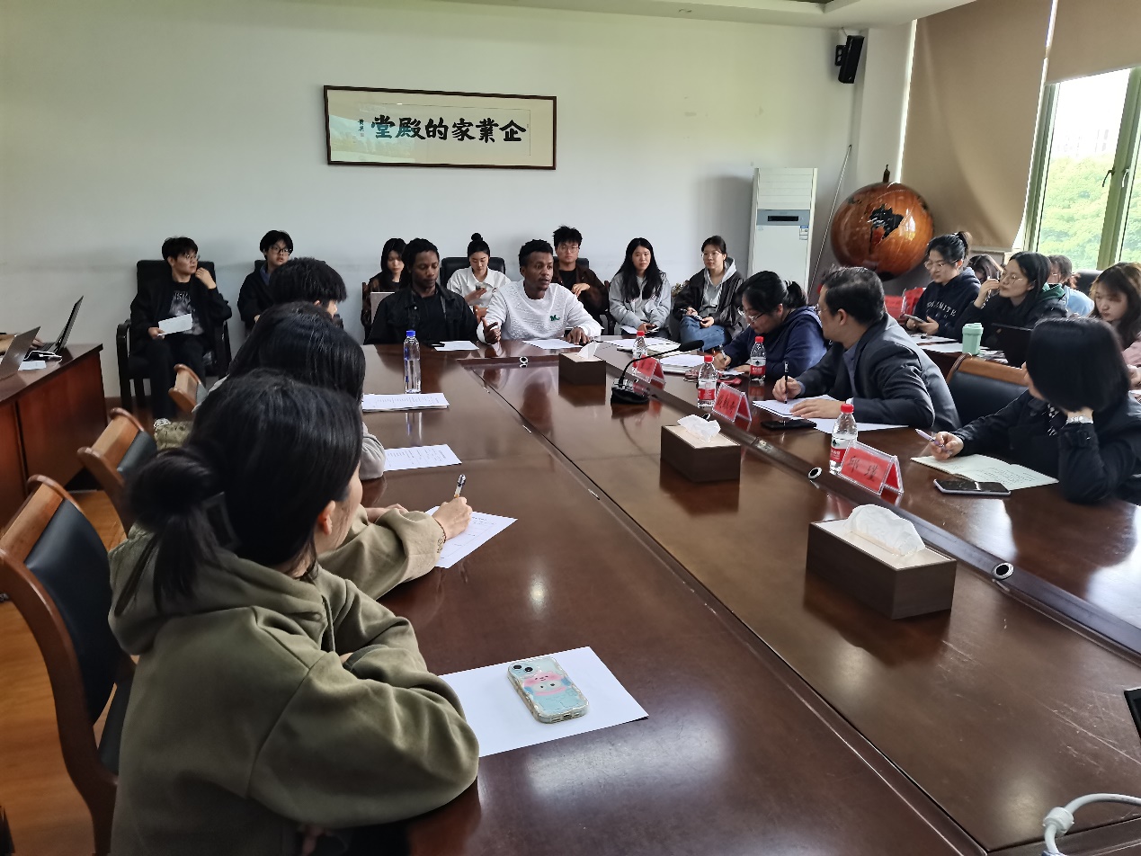 副院长戴维奇教授主持,研究生教学督导邱瑾教授、留学生主管董蕊教授、研究生秘书徐璐老师及37位国内外研究生代表,共同探讨了研究生课程教学和培养管理的现状与挑战。