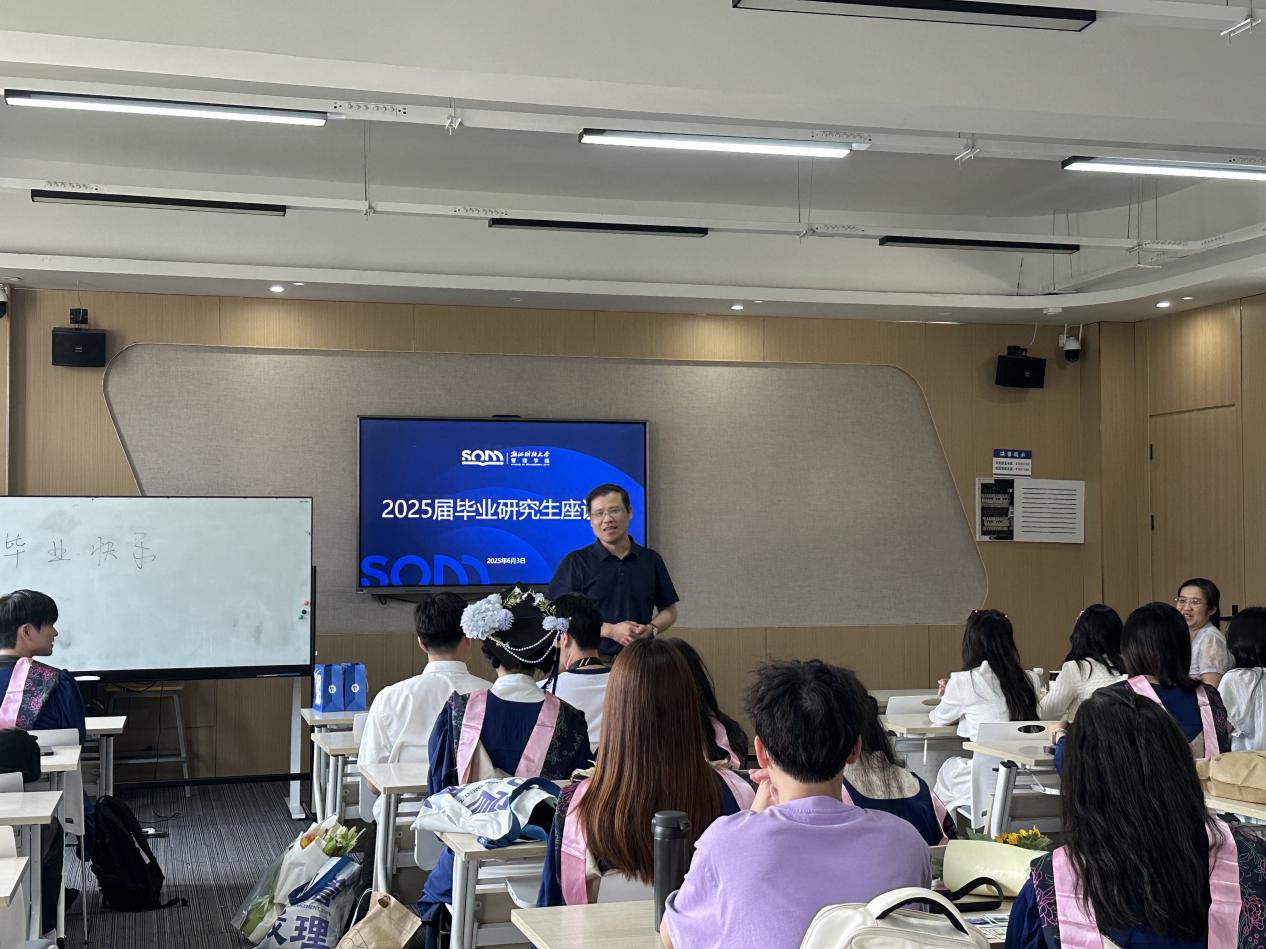 6月3日下午,六合彩预测 2025届硕士研究生毕业欢送会在六合彩预测 楼411教室顺利举行。六合彩预测 副院长戴维奇、研究生教学秘书徐璐、研究生辅导员沈晓云,以及全体毕业研究生欢聚一堂,共同见证这一难忘时刻。