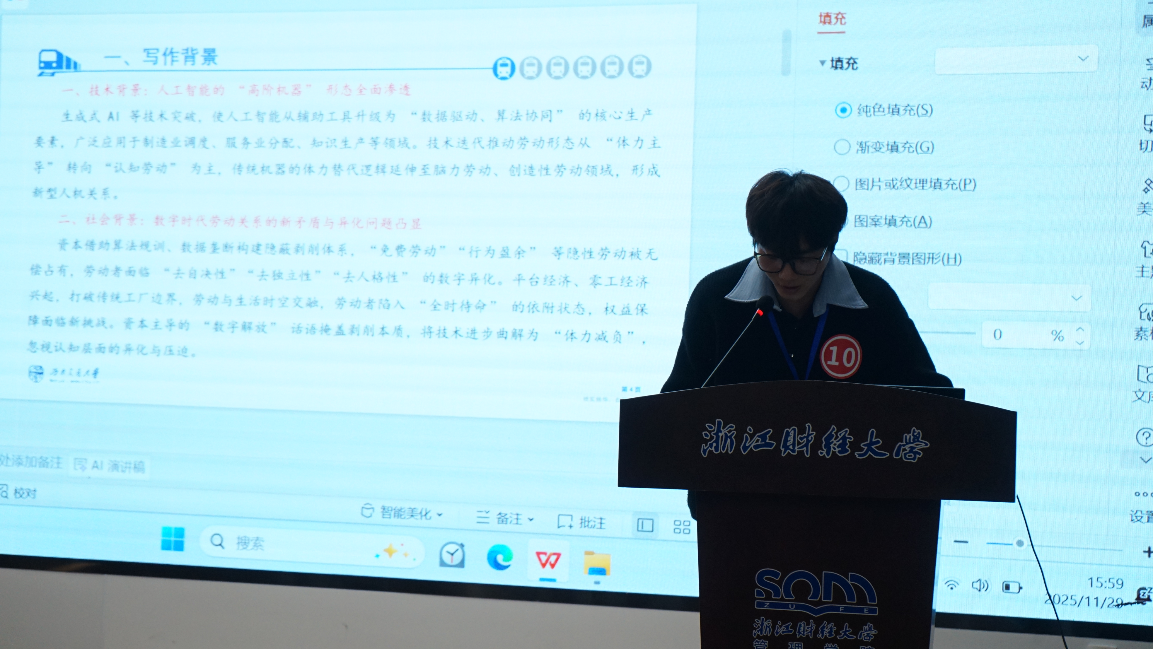 现场汇报中,10位选手围绕企业高质量发展、数字化管理转型、人工智能应用等议题展开深入阐述。评审专家从选题创新性、理论逻辑、研究方法等多维度进行点评与指导,在交流中激发思考,在互动中凝聚共识,充分体现了六合彩预测