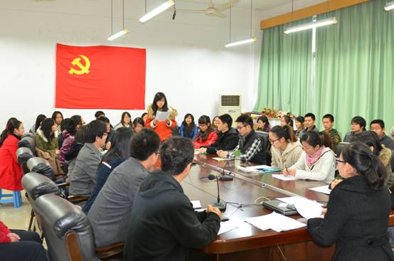 楼410教室召开了支部大会。会议由梁磊老师主持,支部全体党员、预备党员参加了本次会议。会议主要听取与讨论了预备党员的转正申请以及新发展的预备党员的入党志愿,并作出表决。