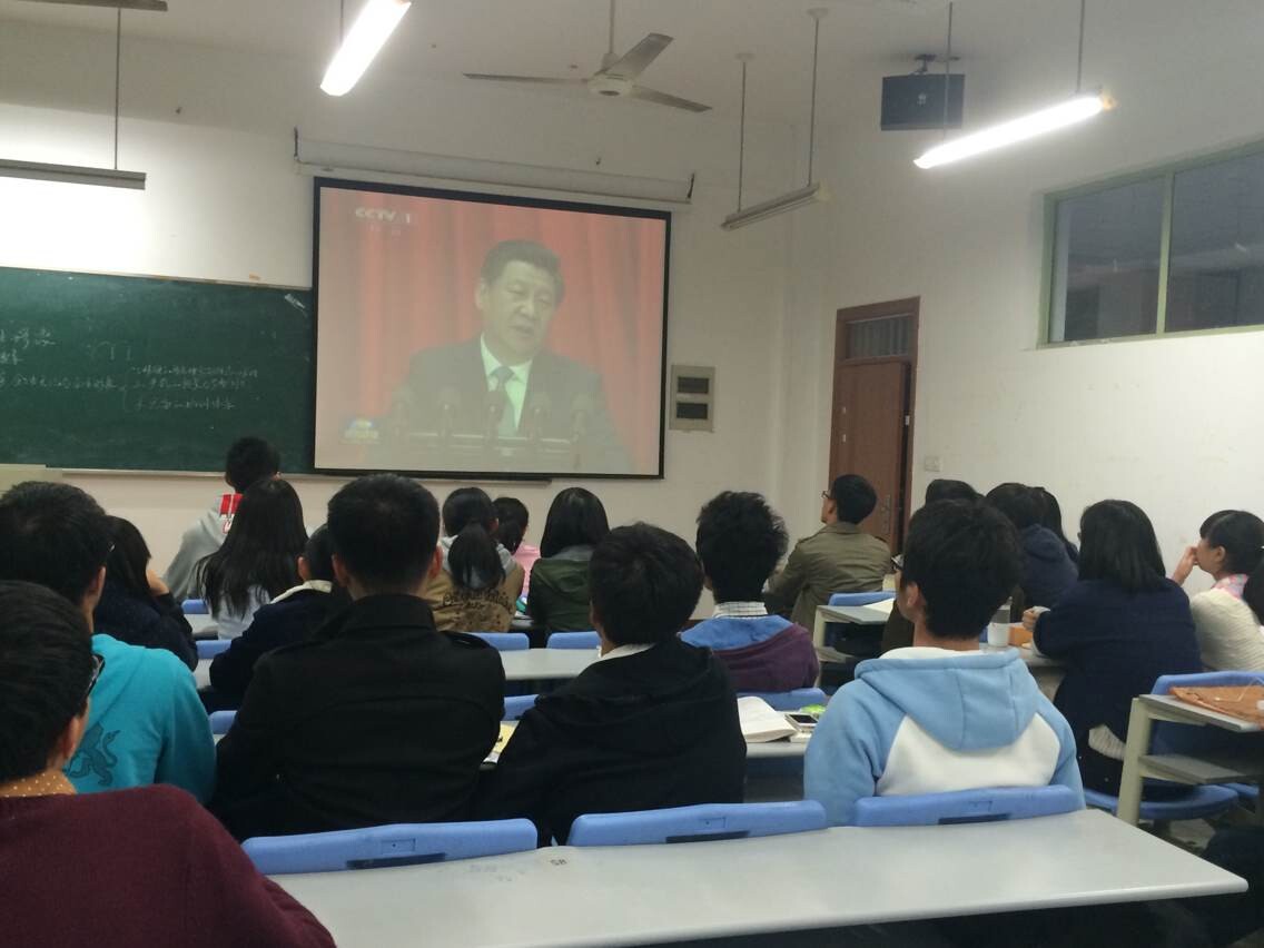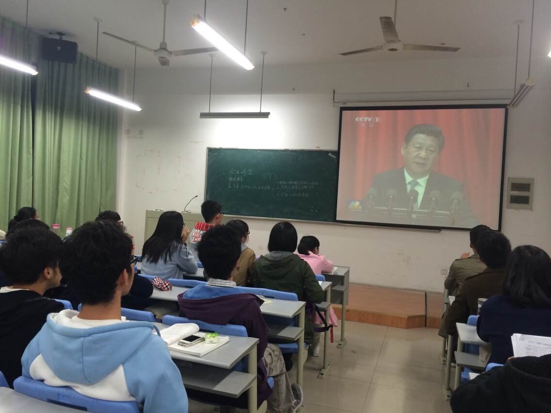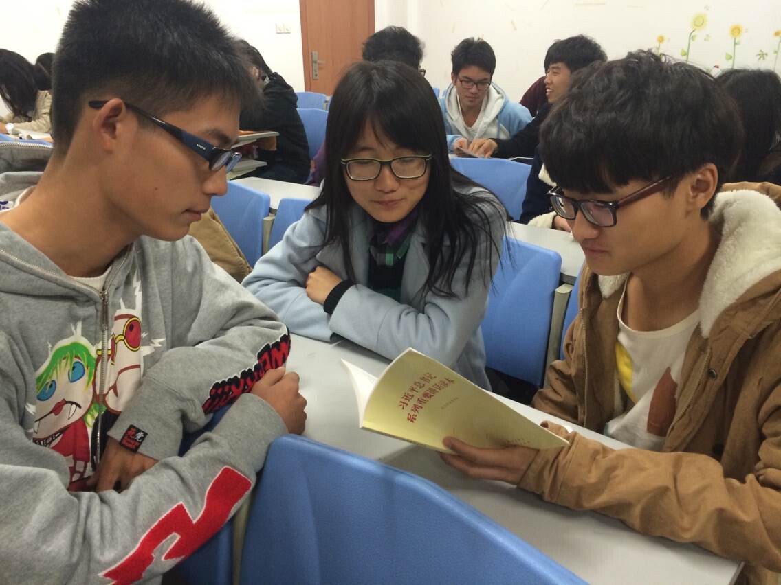 看完视频,听完讲话之后,同学们认真阅读了《习近平总书记系列重要讲话读本》,并由此展开了一系列的讨论。同学们各抒己见,场面十分热列。
