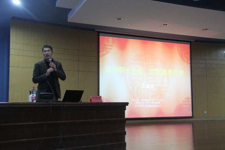 沈书记以一个简短而鲜明的“青蛙实验”开讲,顿时吸引了全场的注意力,扼要地指出大学生对自己的未来的路需要有意识,有准备,有规划。同时,两个轻松的小活动也让现场的氛围迅速活跃起来。沈书记借此指出了职业生涯规划的目标就是帮助我们选择发展的道路。与此同时,他详细地为同学们讲解了规划的五个环节,强调了“审视自我”和“确立目标”的重要性。