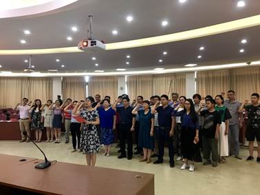 举行了庄严的重温入党誓词仪式,全体教工党员在党委副书记、纪委书记谢敏带领下,面对党旗,再次重温誓言,进一步坚定了理想信念。
