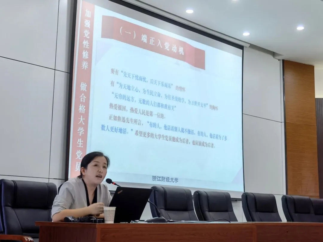 的高燕老师进行授课,高老师以“加强党史学习,提升党性修养,做合格大学生党员”为主题,意在让大学生提升党性修养并增强责任意识以及集体意识,老师通过授课让大家知道了怎样才能成为一个合格的大学生党员。