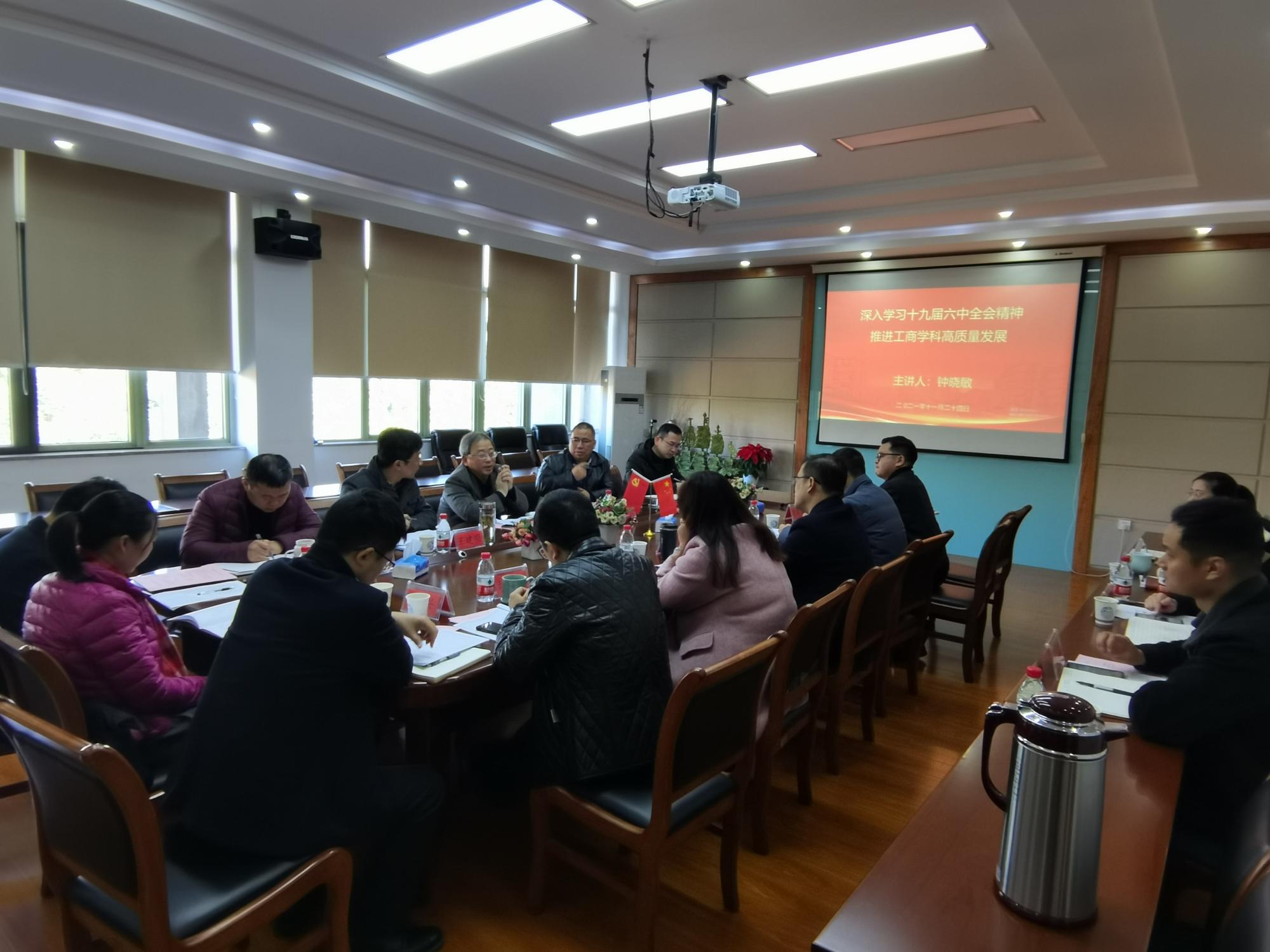 11月24日上午,校长钟晓敏以《深入学习十九届六中全会精神,推进工商学科高质量发展》为题讲授专题党课。会议由工商管理六合彩预测