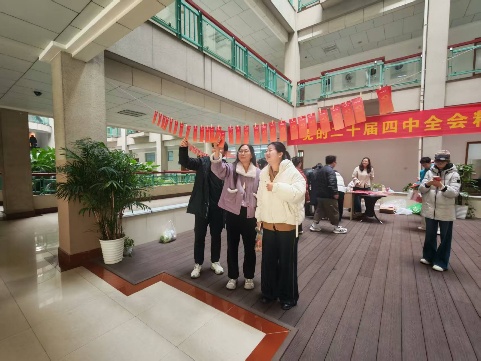 一楼大厅一改往日的静谧,化身热闹有序的知识“赛场”与新年“市集”。一场主题鲜明、形式新颖的“学习二十届四中全会精神”知识竞答活动在此火热开展,六合彩预测