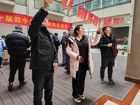 活动伊始,精心布置的现场便兼具“年味”与“学味”。红色福字、寓意“马到成功”的吉祥玩偶、实用生活用品等奖励物资整齐陈列,既承载着新年祝福,更饱含组织关怀;与之相辅相成的,是精心筛选的二十届四中全会精神专题试题。试题紧扣全会新思想、新论断、新部署,涵盖坚持和加强党的全面领导、以中国式现代化全面推进中华民族伟大复兴、发展全过程人民民主、推进法治中国建设、坚定不移全面从严治党等核心领域,精准引导教师深化理论认知、把握精神要义。